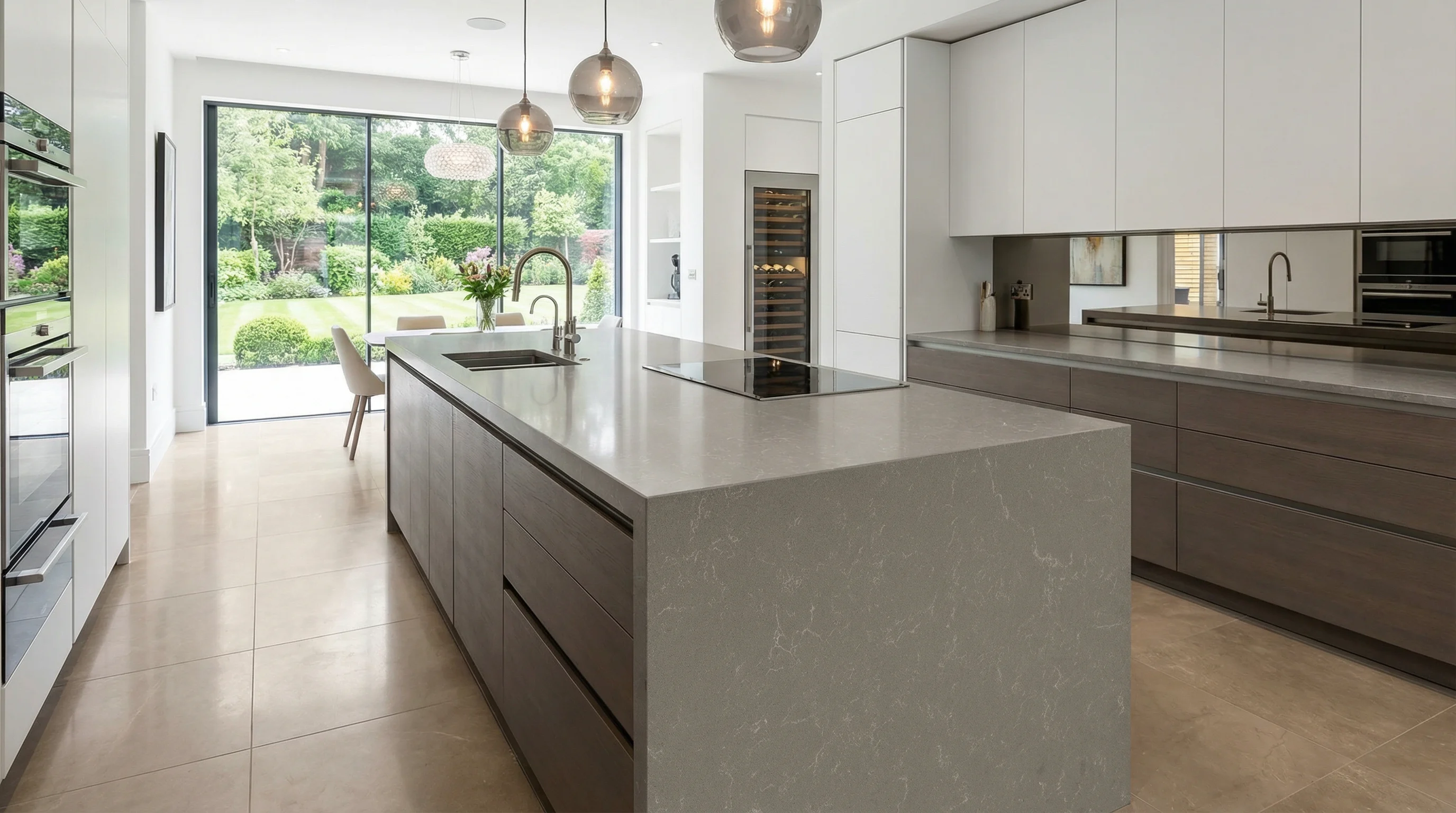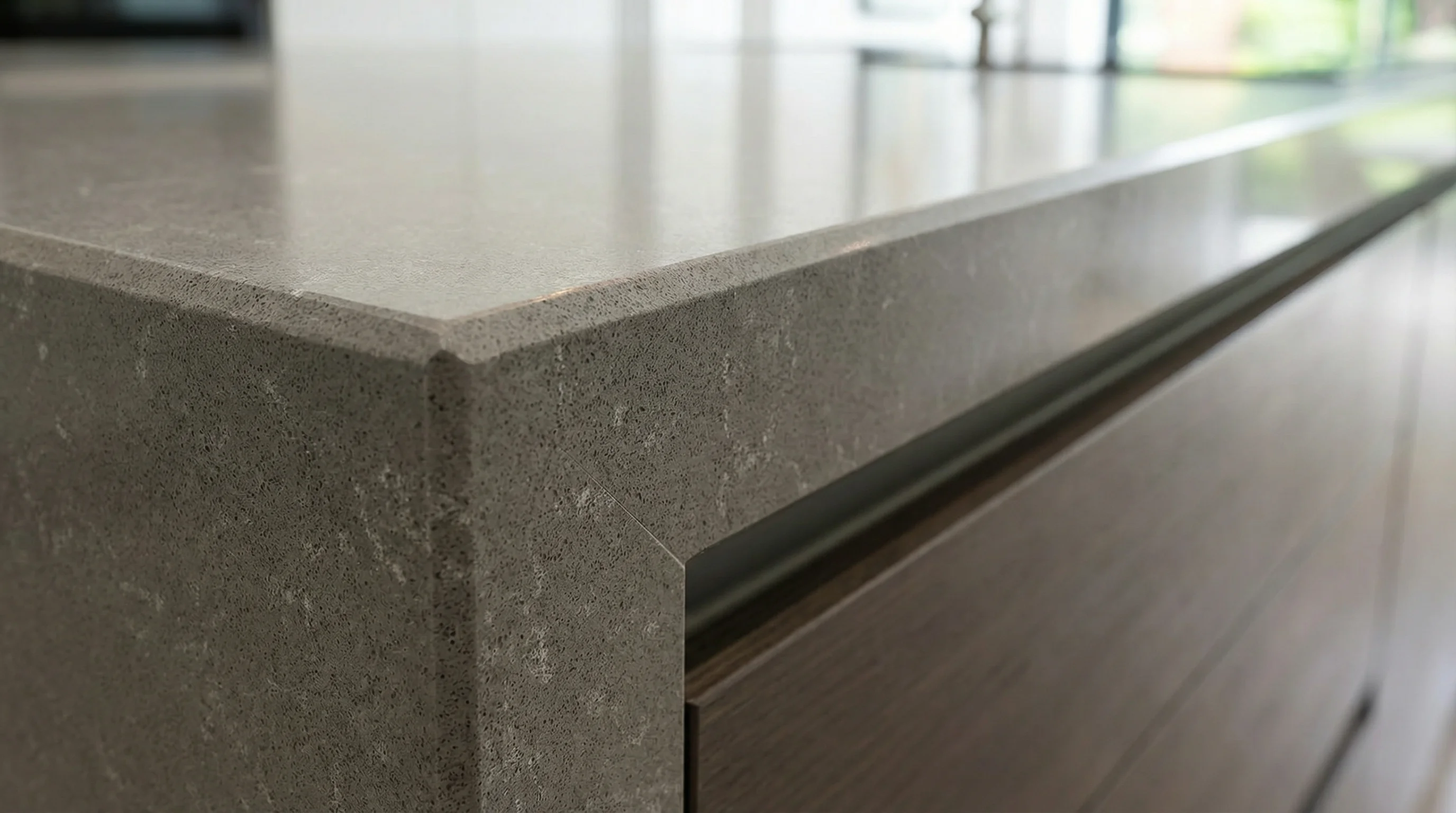 Эта поверхность — воплощение первозданной чистоты северной природы, где каждый сантиметр материала рассказывает историю силы и непоколебимого спокойствия. Изысканная цветовая палитра в приглушенных серых тонах наполнена деликатными переходами и светлыми прожилками, напоминающими туман над застывшим карельским озером. Столешница безупречно интегрируется в современное пространство, наделяя интерьер благородным статусом и визуальной глубиной.