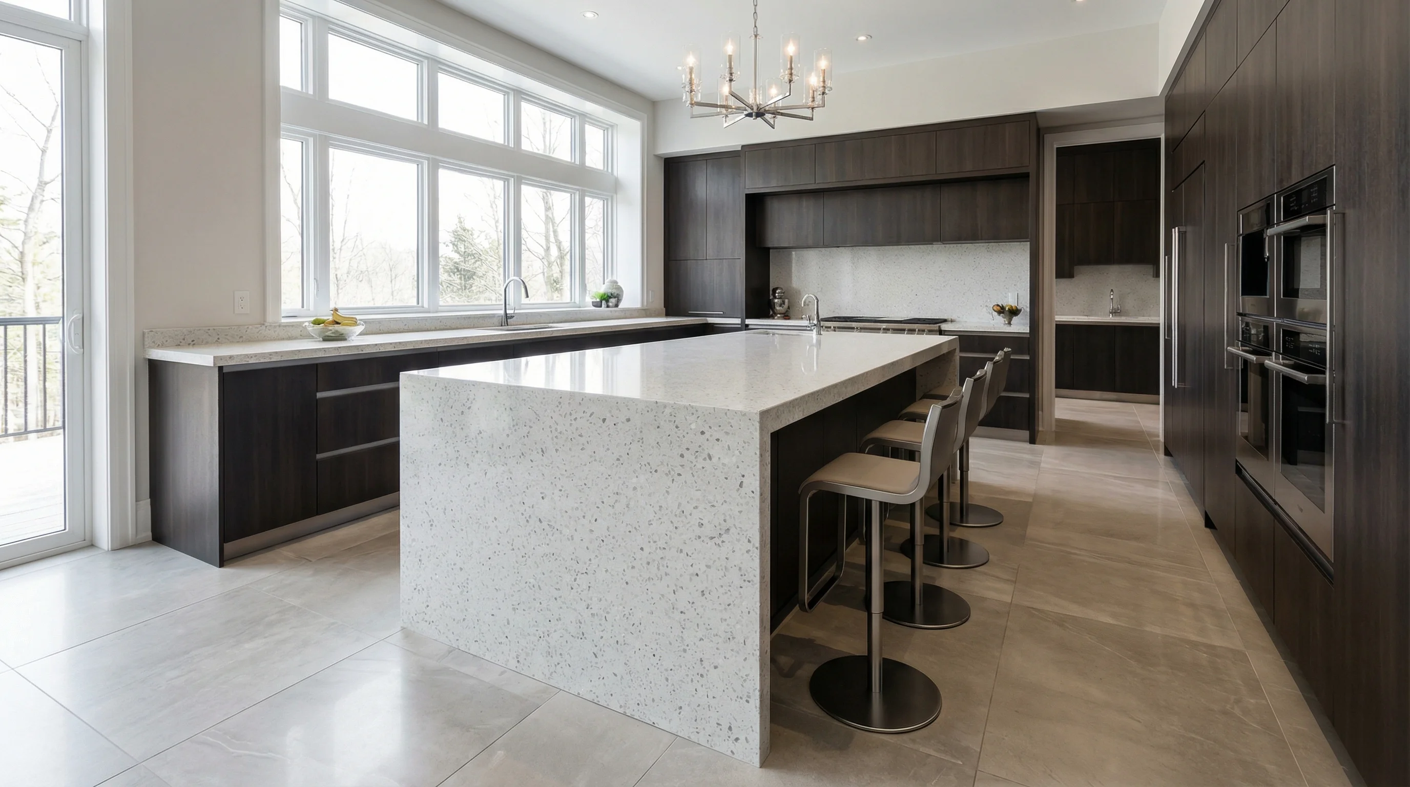 В этой поверхности оживает эстетика современного минимализма, где каждый элемент продуман до совершенства. Мягкий серый тон, дополненный россыпью изящных фракций, создает уникальный визуальный объем и глубину. Такое исполнение наполняет пространство спокойствием и благородством, позволяя свету мягко рассеиваться по поверхности, подчеркивая её безупречную гладкость.