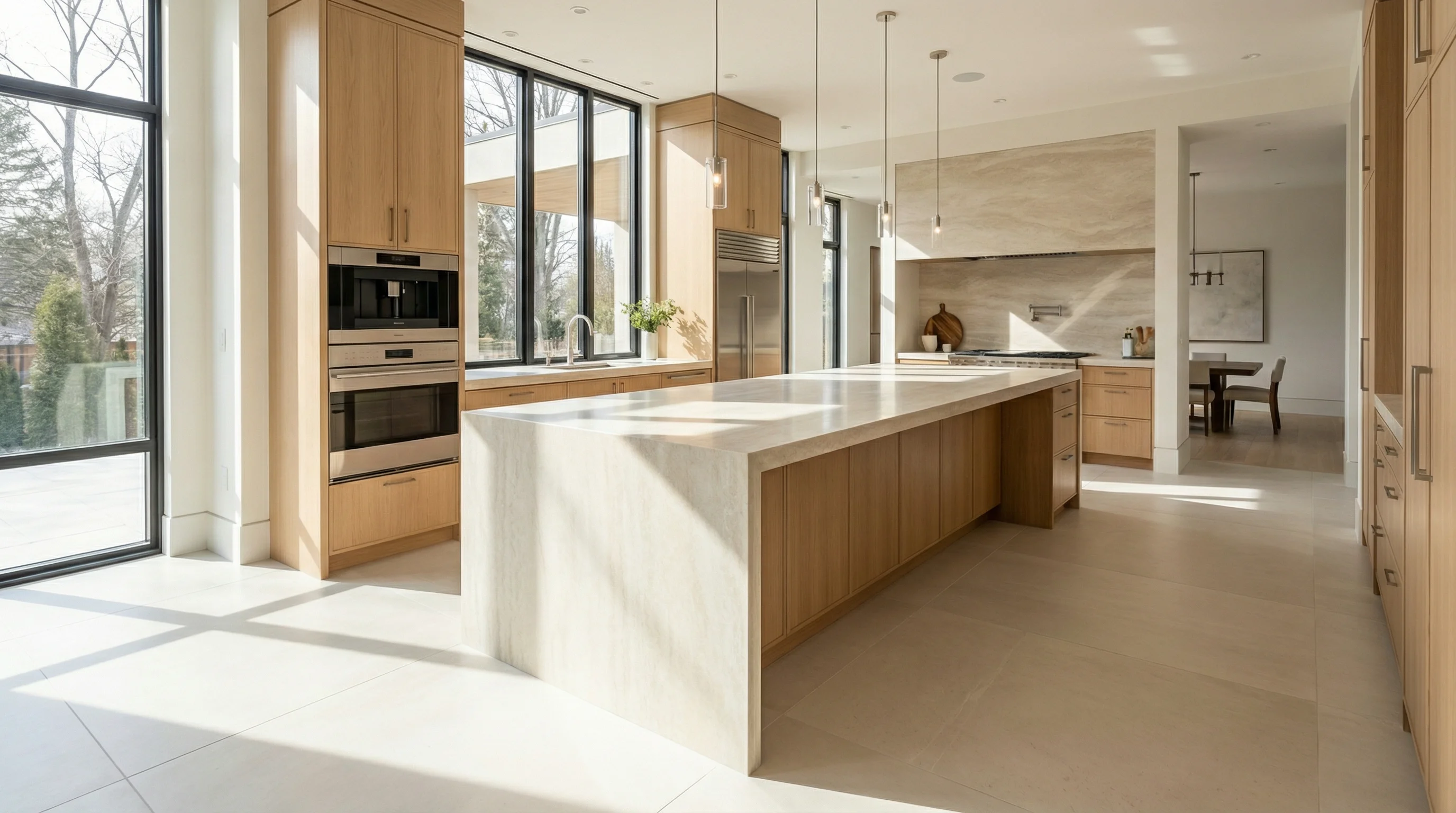 Это воплощение мягкой эстетики и абсолютной гармонии в интерьере. Поверхность изделия завораживает плавными переходами оттенков топленого молока и нежной ванили, создавая атмосферу спокойствия и благородства. Каждая линия подчеркивает глубину фактуры, которая наполняет пространство кухни мягким светом и делает его визуально более просторным.