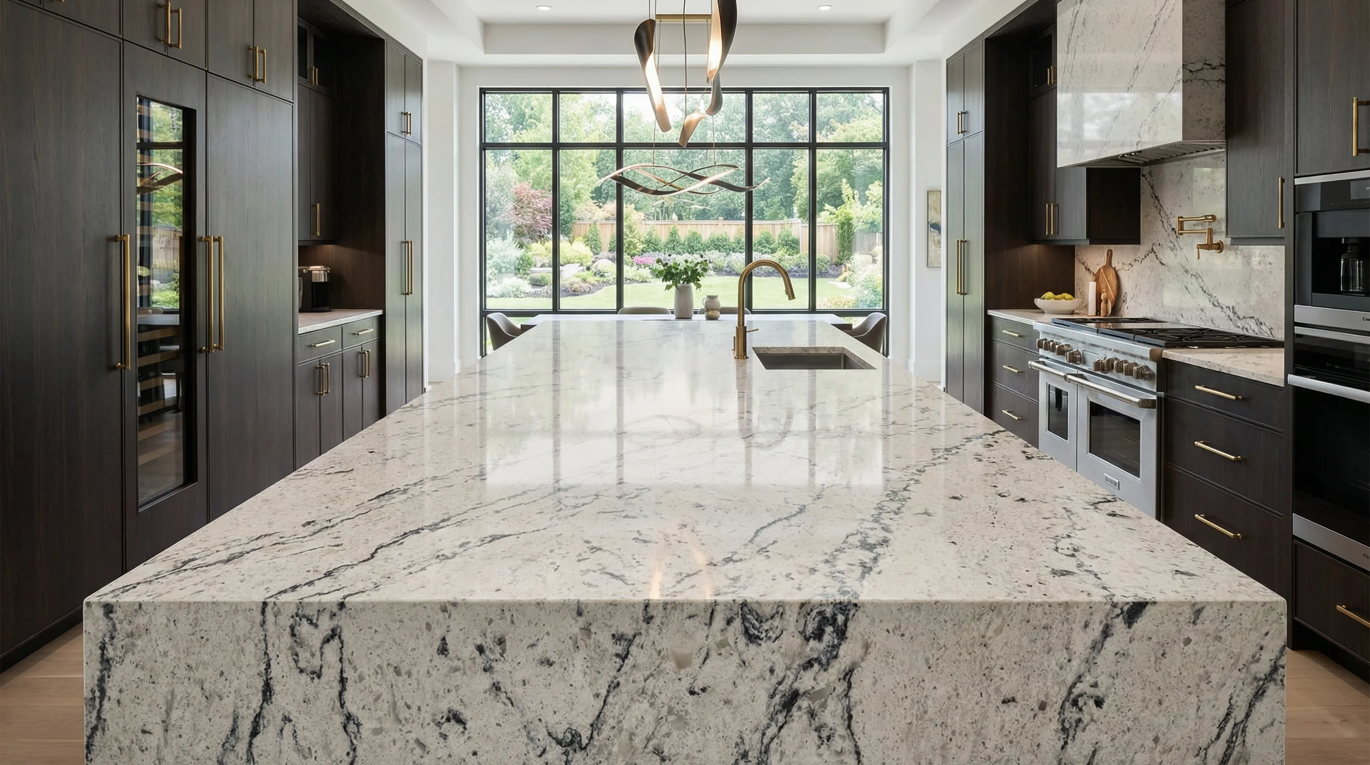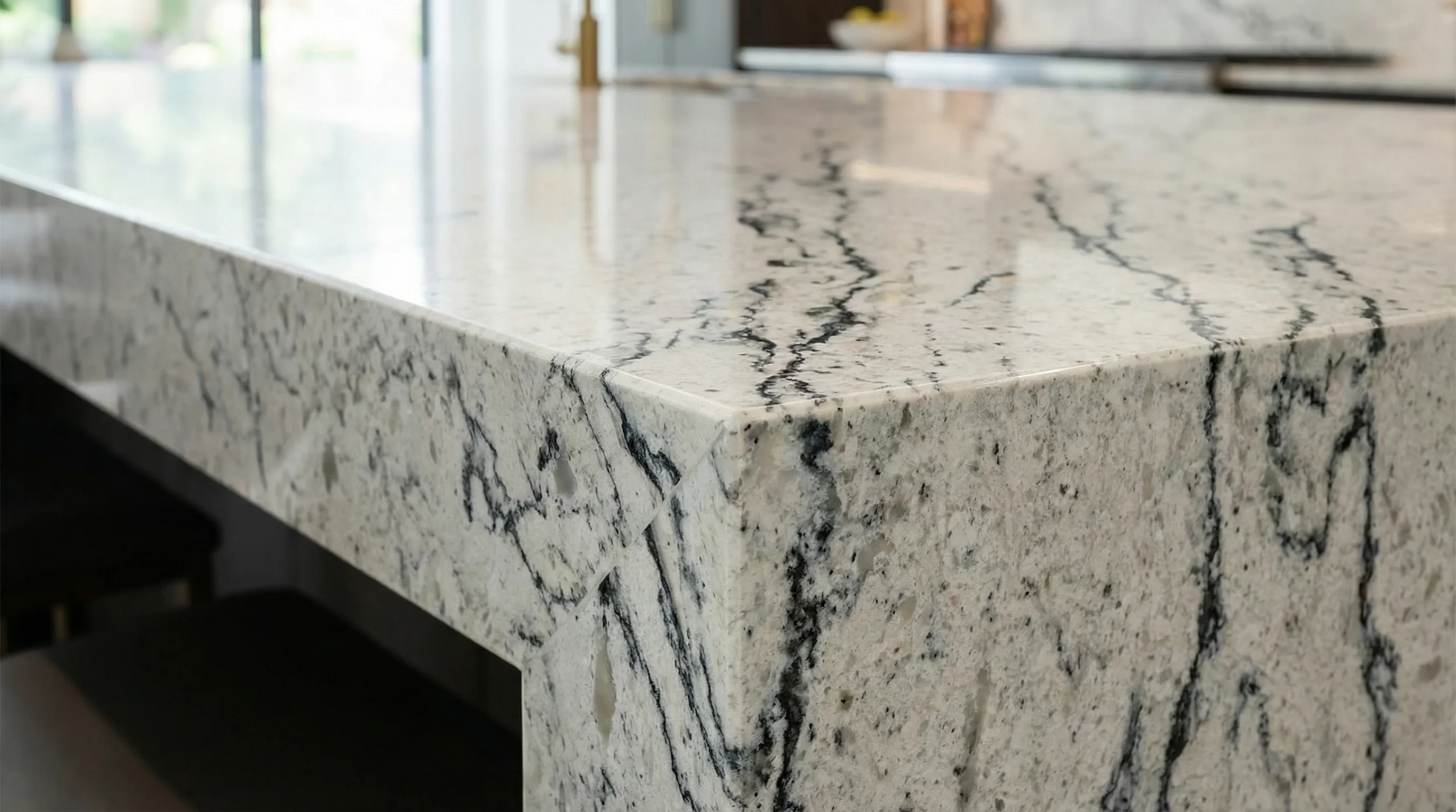 Поверхность изделия притягивает взгляд динамичным контрастом тонких угольных жил и чистого, залитого светом основания. Витиеватый узор словно живет своей жизнью, создавая иллюзию движения и придавая интерьеру выразительную глубину. Благородная фактура и сдержанный блеск подчеркивают премиальный статус пространства, превращая рабочую зону в место вдохновения и гармонии.