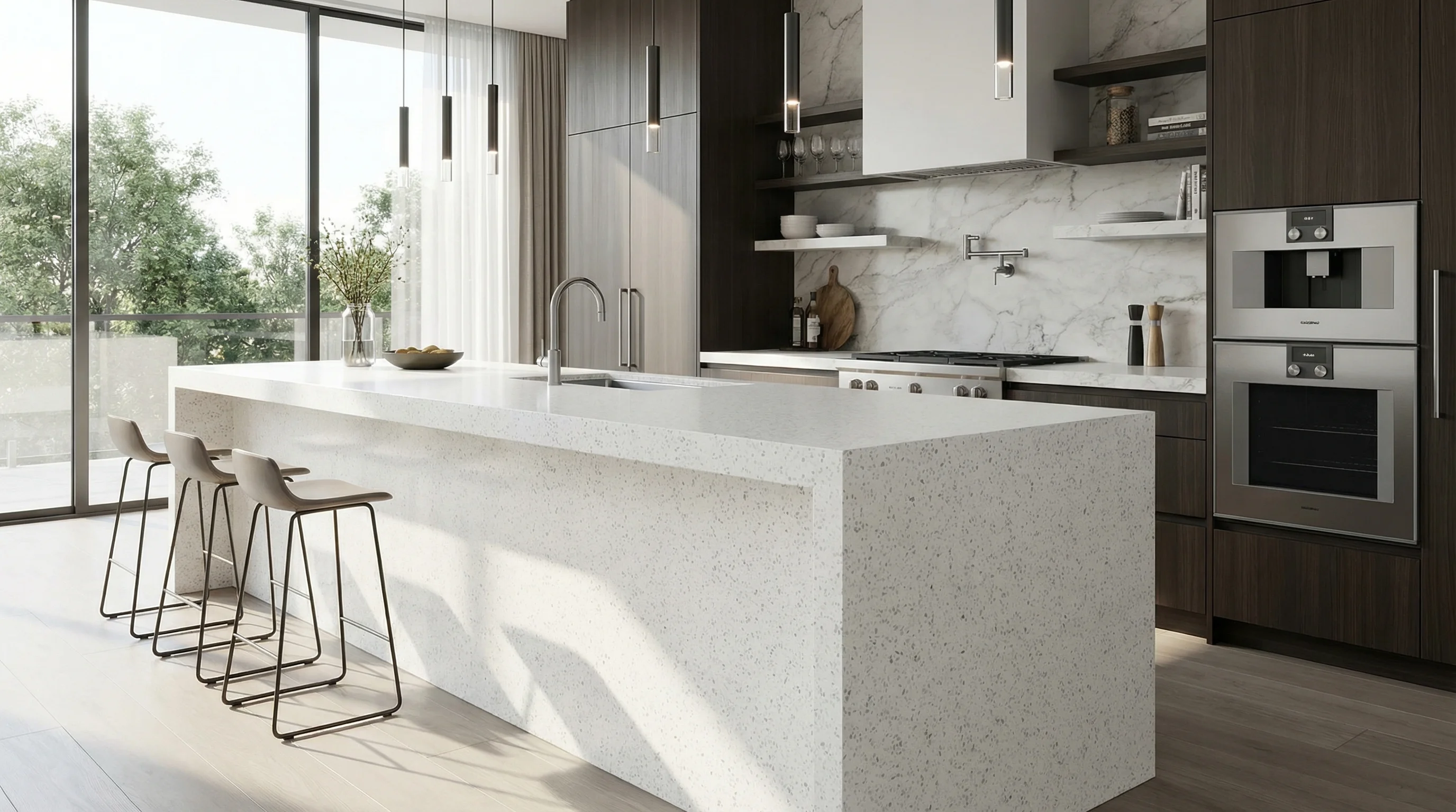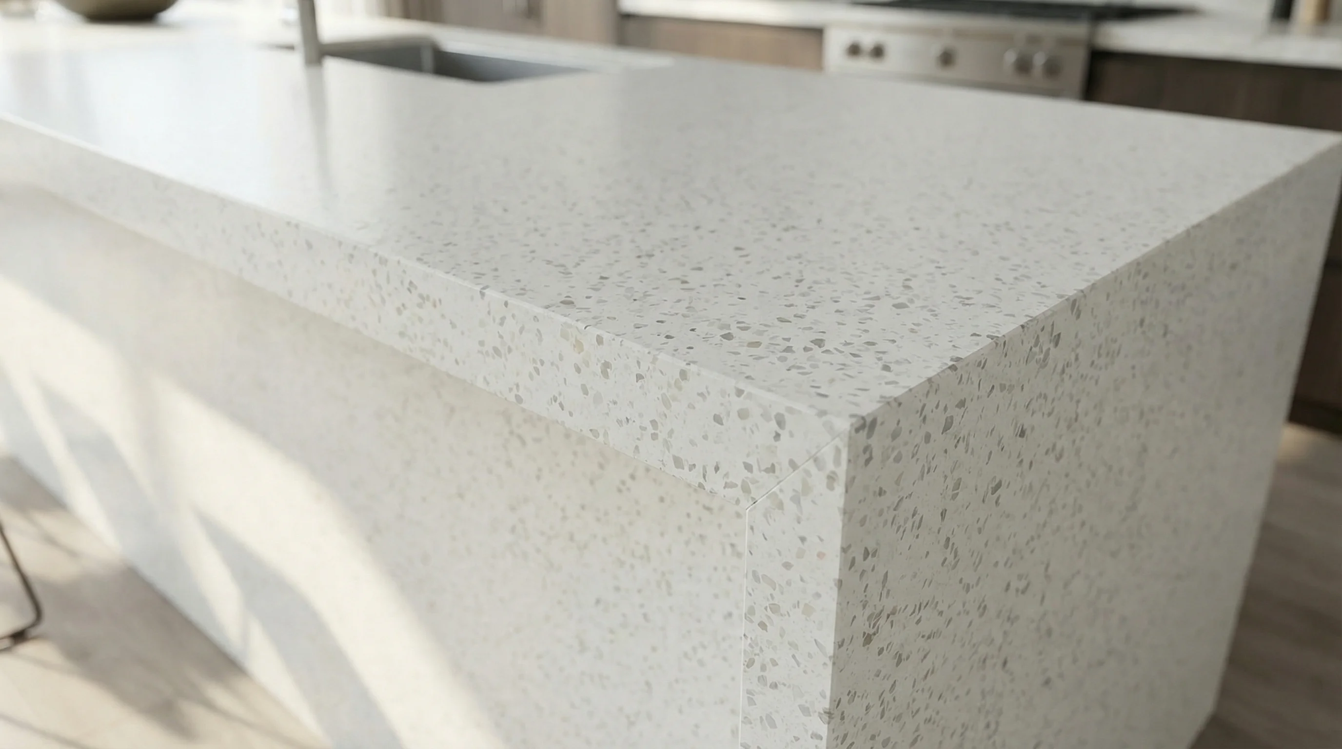 Помимо визуального совершенства, поверхность отличается исключительной износостойкостью и долговечностью. Плотная, непористая структура материала гарантирует идеальную гигиеничность и легкость в уходе, сохраняя первоначальный лоск на протяжении десятилетий. Это монументальное решение, в котором природная сдержанность встречается с безупречным качеством исполнения, обеспечивая надежность в ежедневной эксплуатации.