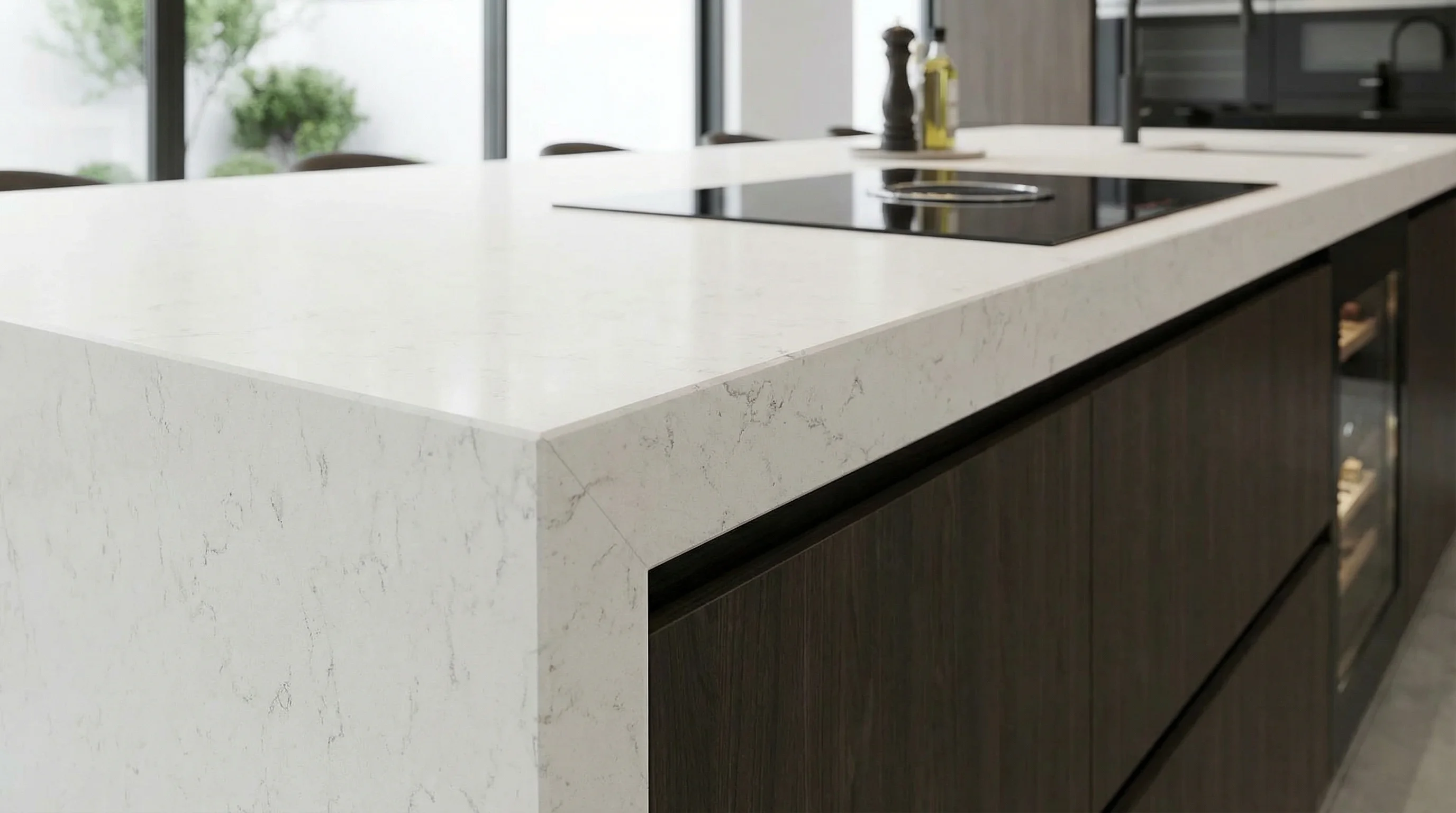 Эта поверхность воплощает в себе чистоту первозданной природы и элегантность утончённых графичных линий. Ослепительно светлое полотно с мягкими, едва уловимыми пепельными прожилками создает эффект визуальной глубины, наполняя интерьер светом и ощущением безграничного пространства. Фактура материала дарит благородное спокойствие, превращая каждый сантиметр рабочего пространства в объект высокого дизайна.