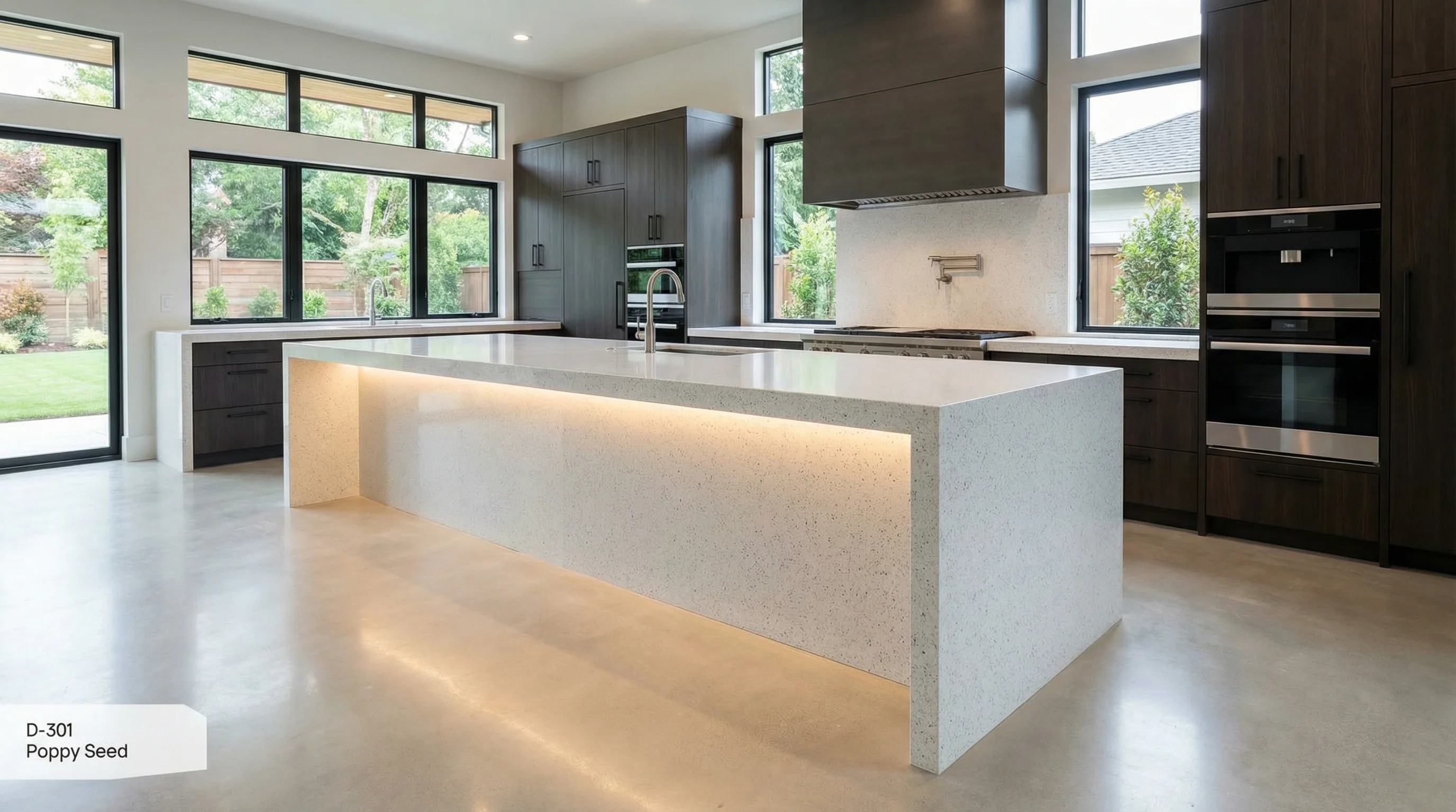 В основе визуальной концепции этого решения лежит безупречная чистота и математический ритм мельчайших деталей. На ровном светлом полотне, напоминающем свежий утренний наст, деликатно рассыпаны графитовые вкрапления, создающие эффект глубокого и сложного объема. Этот мягкий контраст оживляет интерьер, сохраняя атмосферу абсолютного спокойствия и порядка, при этом не перегружая пространство лишними деталями.
