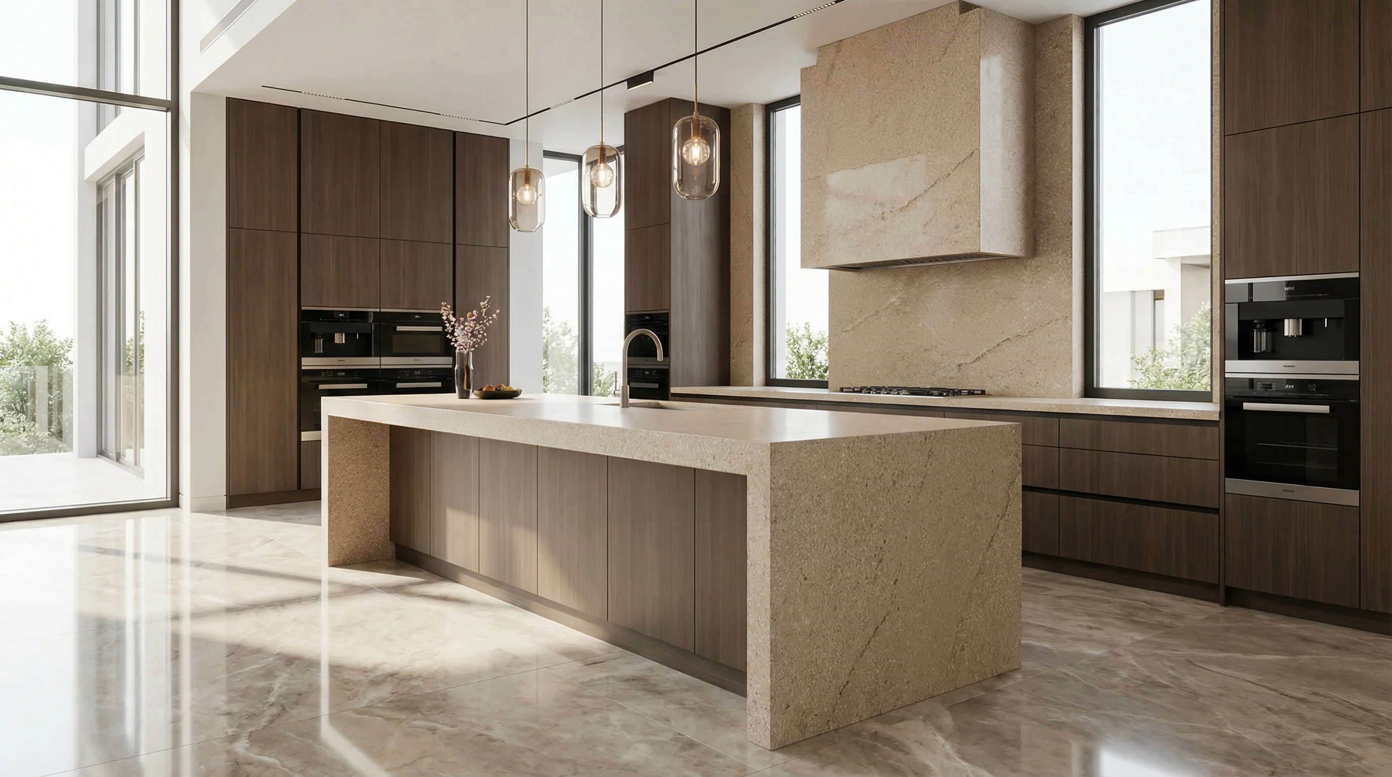 Это воплощение безмятежности и теплого света в интерьере. Глубокий песочный оттенок с мягкими переходами и едва уловимыми вкраплениями создает визуальный объем, напоминающий бескрайние дюны, прогретые полуденным солнцем. Поверхность притягивает взгляд своей естественностью, становясь безупречным фоном для моментов домашнего уюта и высокой эстетики.