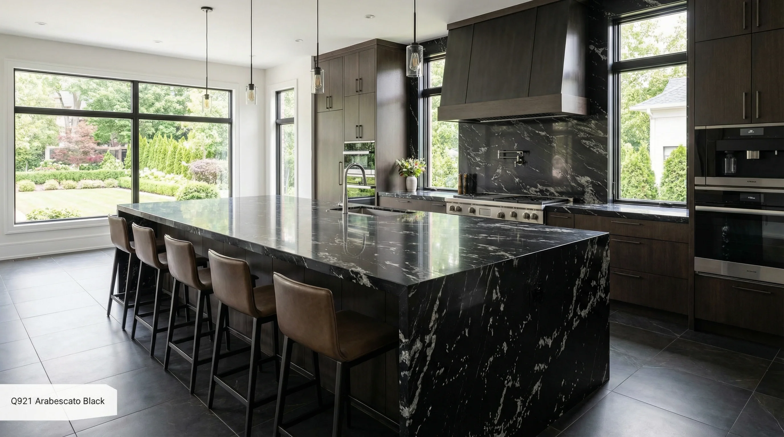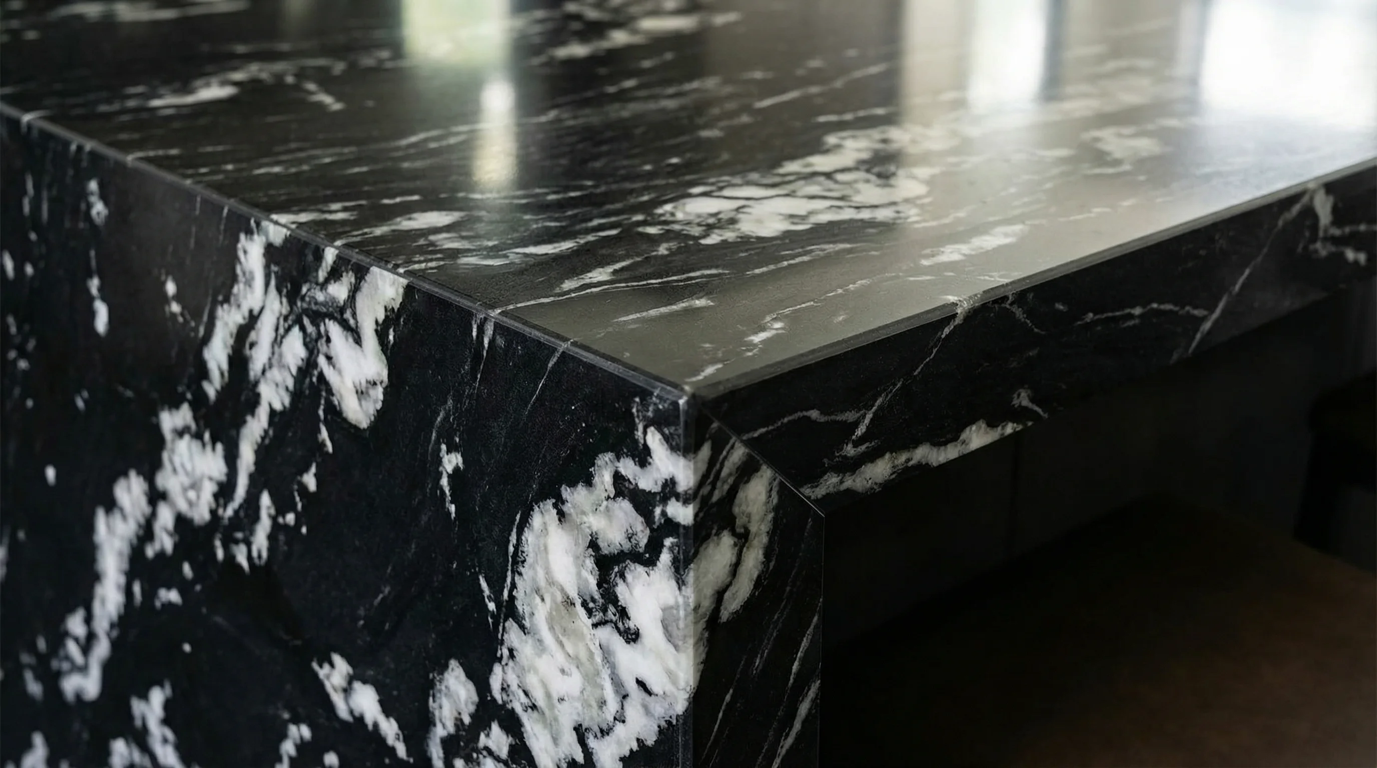 Глубокий антрацитовый холст, пронзенный динамичными нитями светлых вен, создает визуальную симфонию первозданной природы. Рисунок поверхности Arabescato Black напоминает вспышки молний в ночном небе, привнося в интерьер благородный драматизм и изысканную строгость. Этот контраст превращает пространство в настоящее произведение искусства, которое притягивает взгляд и подчеркивает исключительный вкус владельца.
