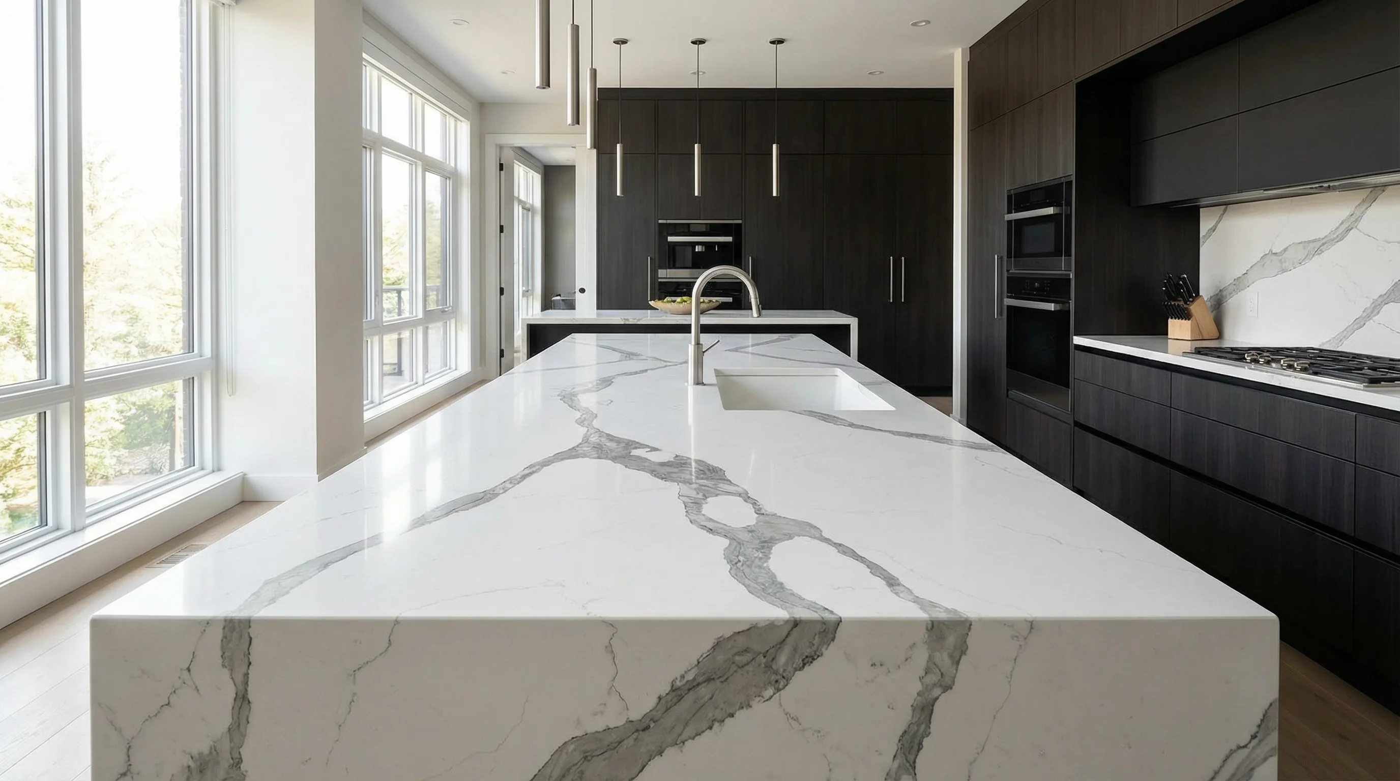 Рисунок этой поверхности вдохновлен первозданной красотой природы, где широкие серые линии смело пересекают ослепительно-белое полотно. Взаимодействие контрастов создает уникальный визуальный объем, превращая рабочую зону в выразительный арт-объект. Динамичный ритм прожилок и глубина цвета наполняют интерьер воздухом, подчеркивая безупречный вкус владельца и чистоту выбранного стиля.