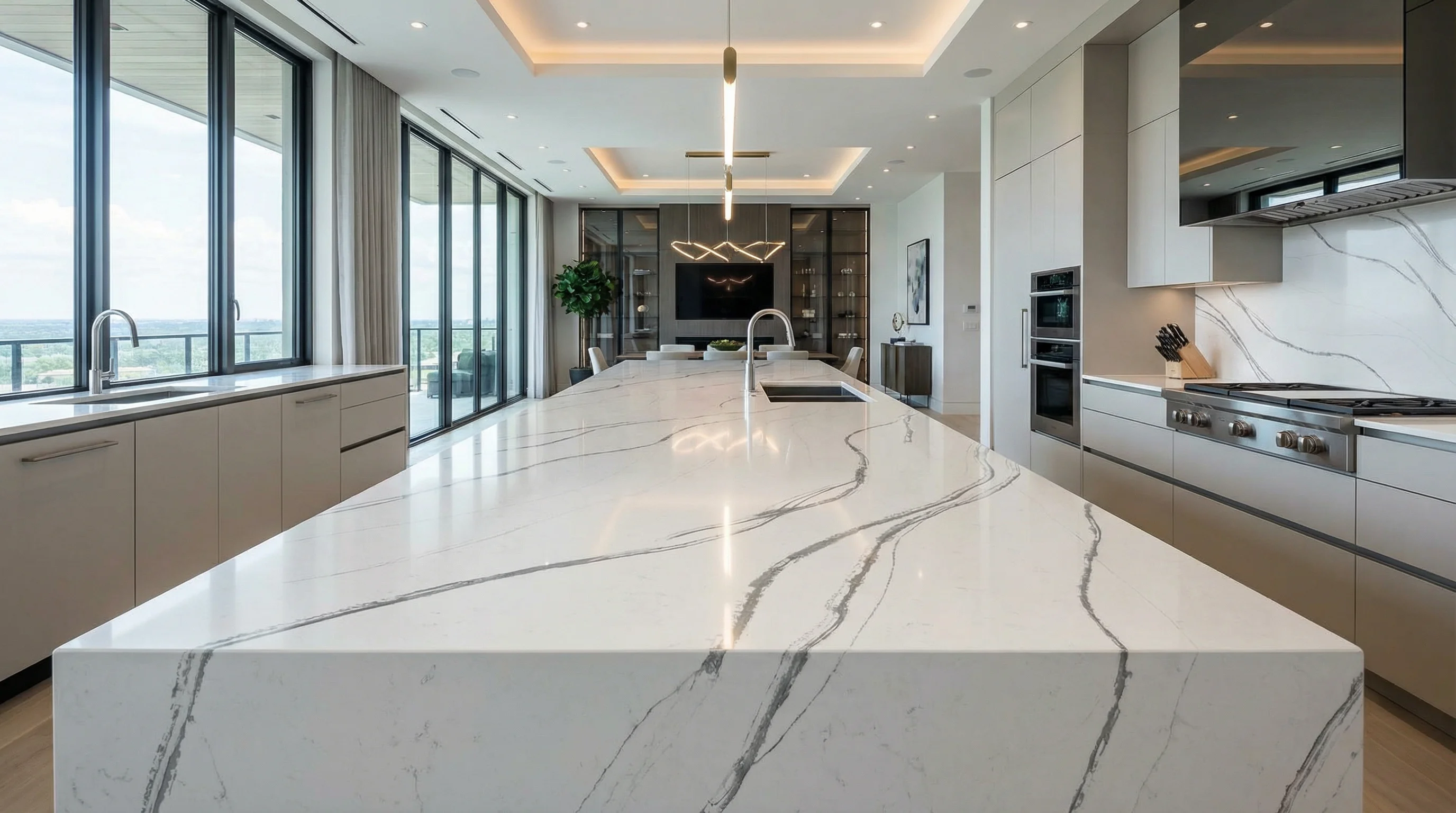 Чистейшее полотно, вдохновленное первозданной красотой зимнего утра, превращает пространство в настоящую художественную галерею. На глубоком молочно-белом фоне разворачивается захватывающий сюжет из выразительных пепельных жил, которые создают неповторимый динамичный ритм. Эта поверхность становится смысловым центром интерьера, наполняя его светом, воздухом и ощущением безграничного простора.