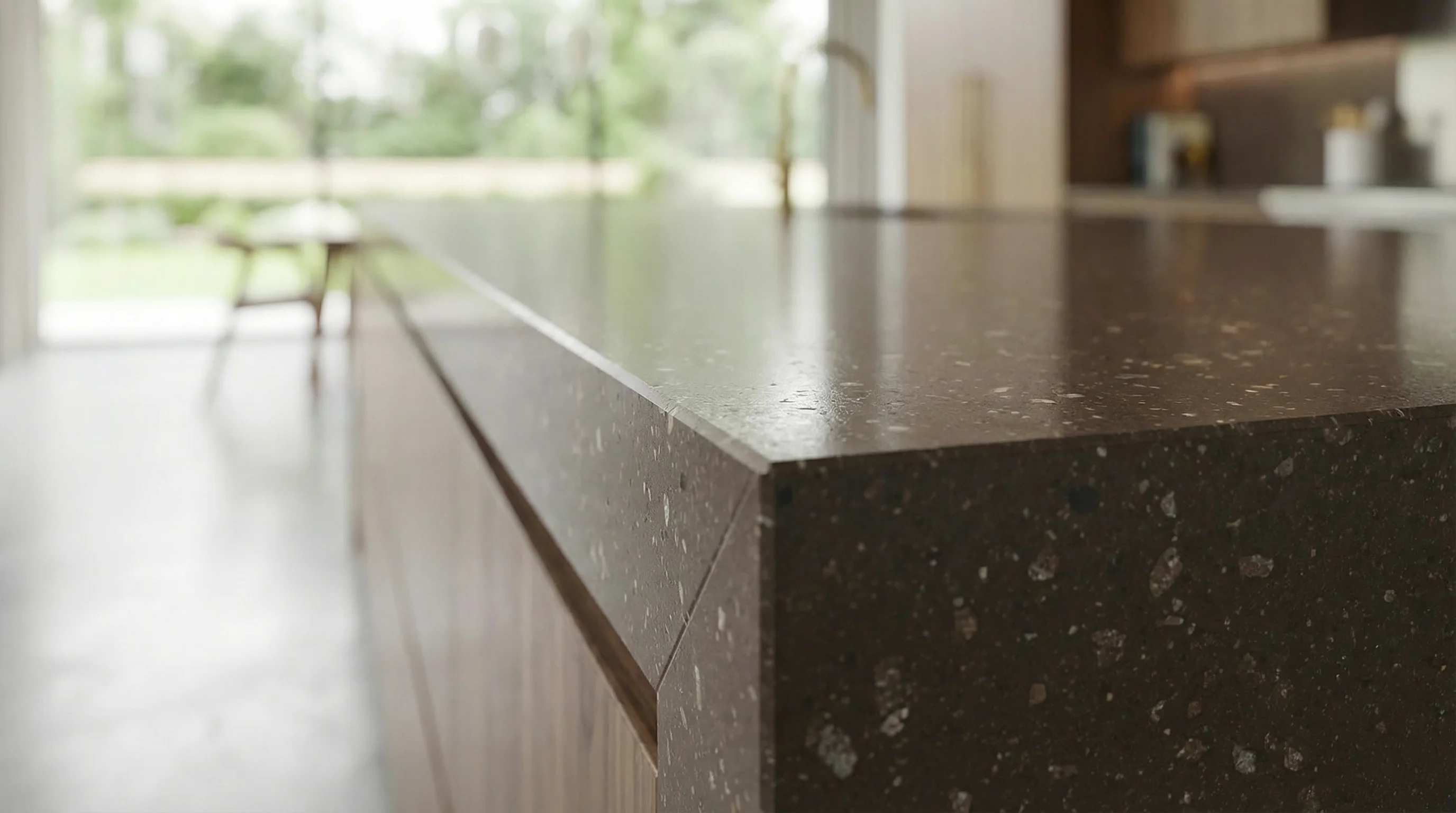 Эта поверхность — воплощение благородной глубины и сдержанной силы. Насыщенный, сложный темный оттенок служит идеальным фоном для деликатной россыпи светлых включений, напоминающих драгоценные минералы в недрах земли или далекие звезды в ночном небе. Текстура оживляет интерьер, придавая ему динамику и изысканную визуальную сложность, не перегружая пространство.