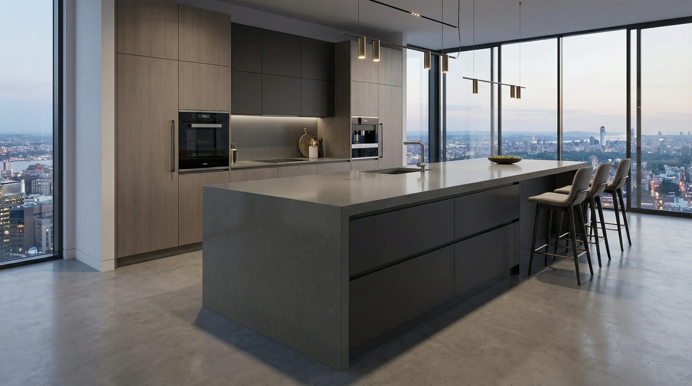 Этот исключительный материал, вдохновленный строгой элегантностью камня Gris Expo, привносит в интерьер ощущение монументальности и сдержанной роскоши. Его глубокий, однородный серый оттенок и мелкозернистая текстура создают визуальную глубину, которая гармонично вписывается в любой современный или классический дизайн. Гладкая, матовая поверхность столешницы подчеркивает благородство натурального камня, предлагая эстетическое наслаждение при каждом прикосновении.