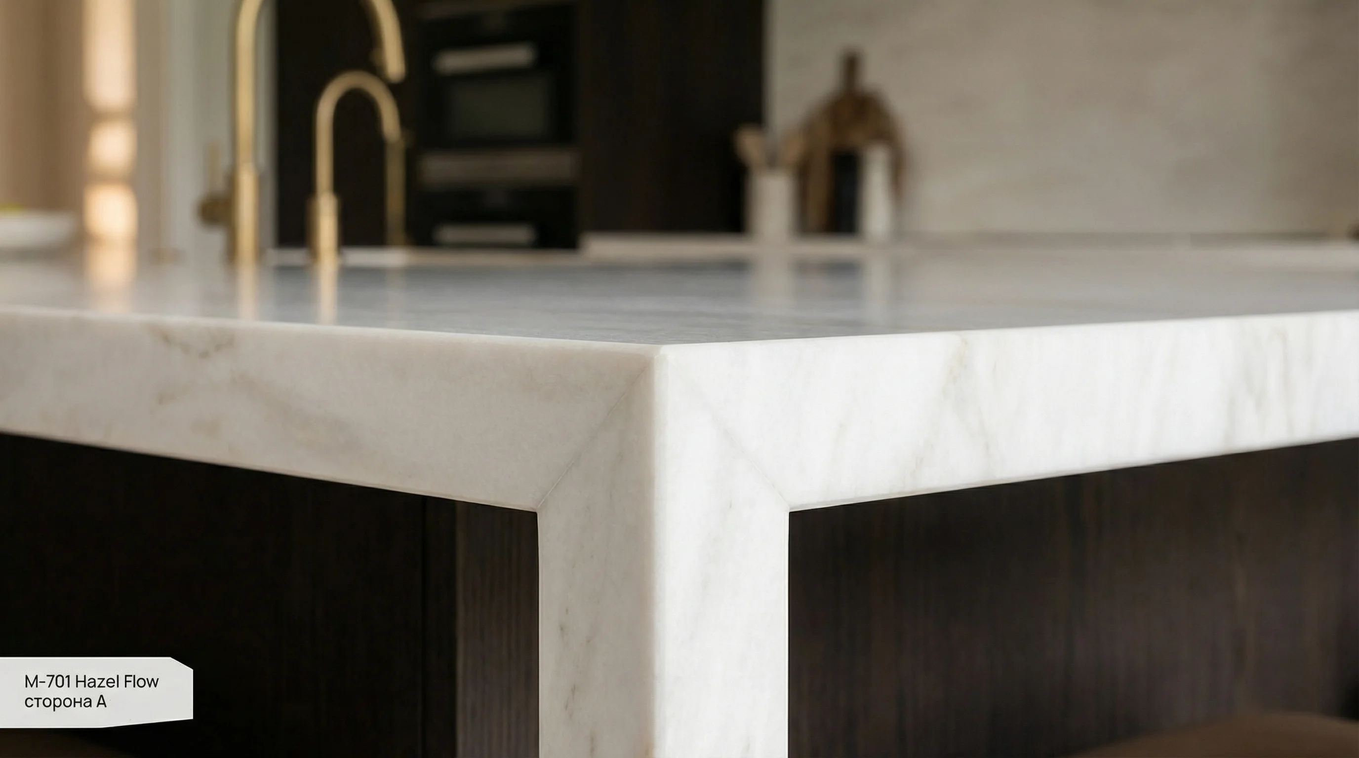 Это изделие воплощает в себе эстетику первозданного спокойствия и утонченной роскоши. Его фактура завораживает мягкой игрой молочных оттенков, по которым едва заметно струятся теплые золотисто-ореховые жилы, напоминающие плавное течение лесной реки. Благодаря такой палитре поверхность кажется объемной и живой, наполняя пространство мягким внутренним светом и создавая атмосферу абсолютного комфорта.