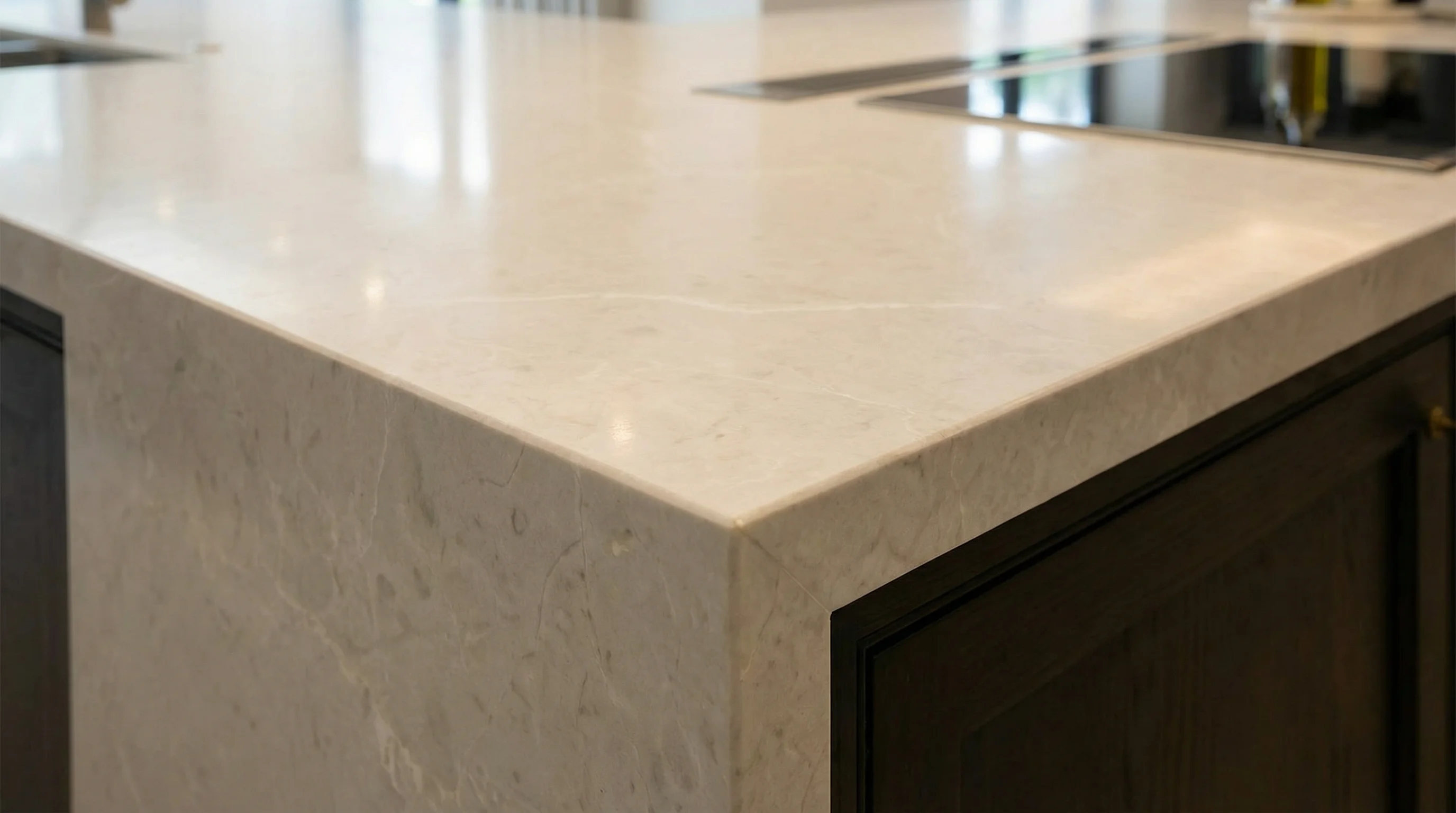 Это изделие воплощает собой философию утонченности и спокойного величия. Поверхность завораживает мягким кремовым оттенком с едва уловимыми, словно акварельными, прожилками, которые плавно перетекают друг в друга. Приятная на ощупь текстура напоминает драгоценный сатин, привнося в интерьер ощущение визуальной теплоты и гармонии. Гладкая фактура мастерски взаимодействует со светом, наполняя пространство кухни благородным и мягким сиянием.