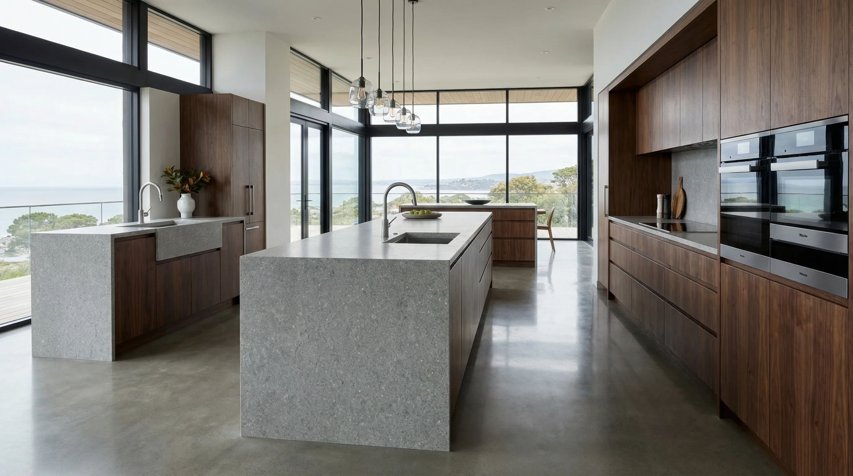 Эта элегантная столешница из искусственного камня представляет собой воплощение современного стиля и надежности. Ее изысканный светло-серый оттенок с тонкими, естественными вкраплениями идеально вписывается в минималистичный дизайн кухни, создавая ощущение спокойствия и гармонии. Камень не только притягивает взгляд, но и обладает превосходными эксплуатационными характеристиками, делая ваше пространство практичным и долговечным.