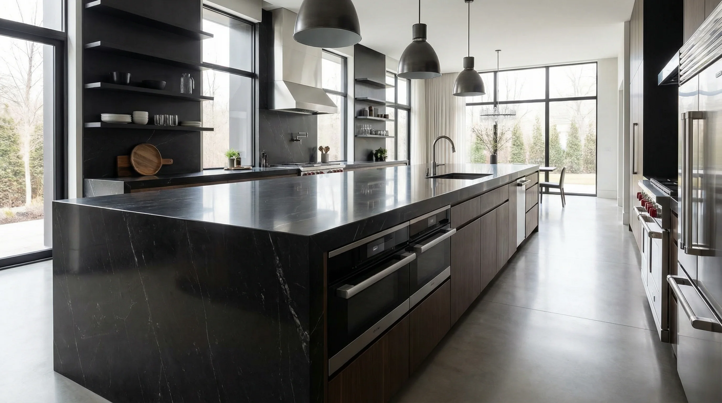 Сочетание глубокого цвета и изысканного природного рисунка позволяет этому решению гармонично дополнить как минималистичный хай-тек, так и строгий неоклассический стиль. Это выбор тех, кто ценит бескомпромиссное качество и стремится окружить себя предметами, обладающими истинной ценностью и неподвластной времени красотой.