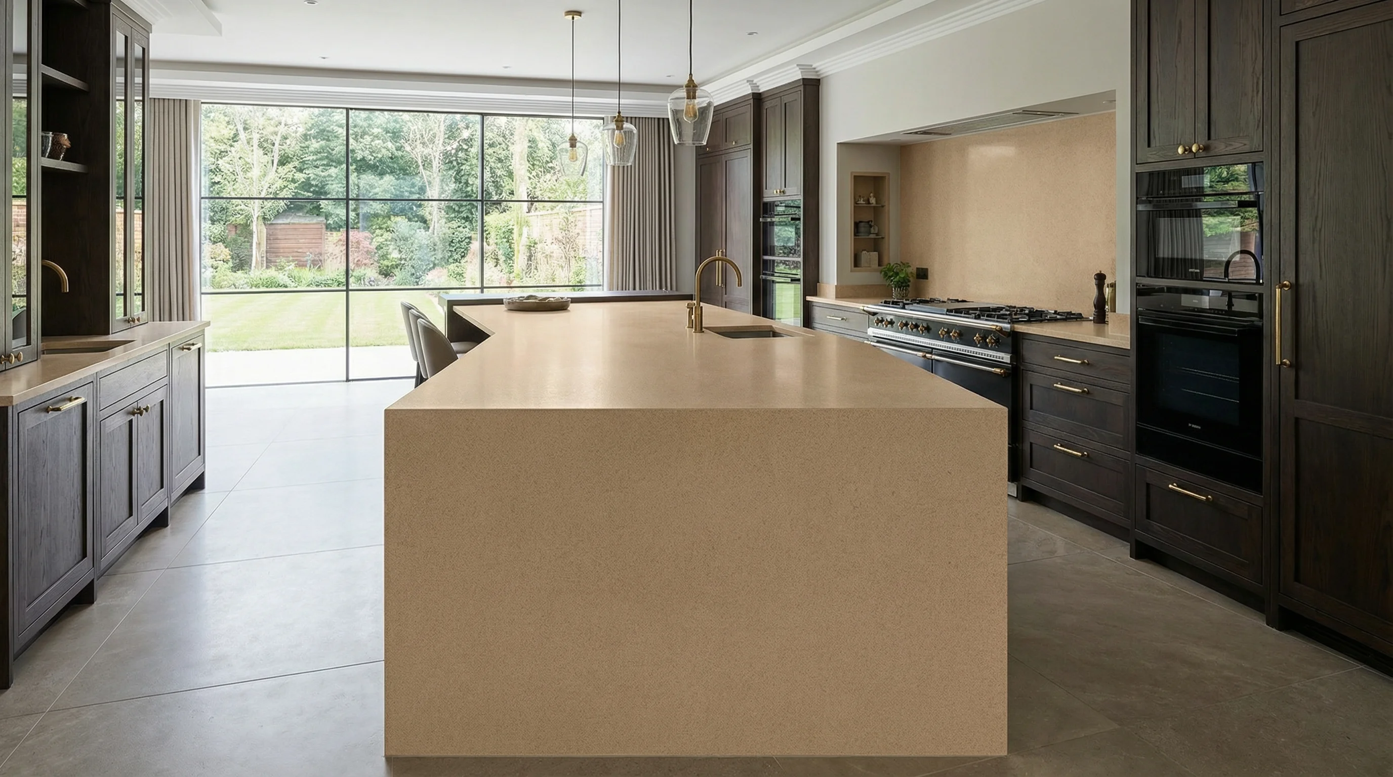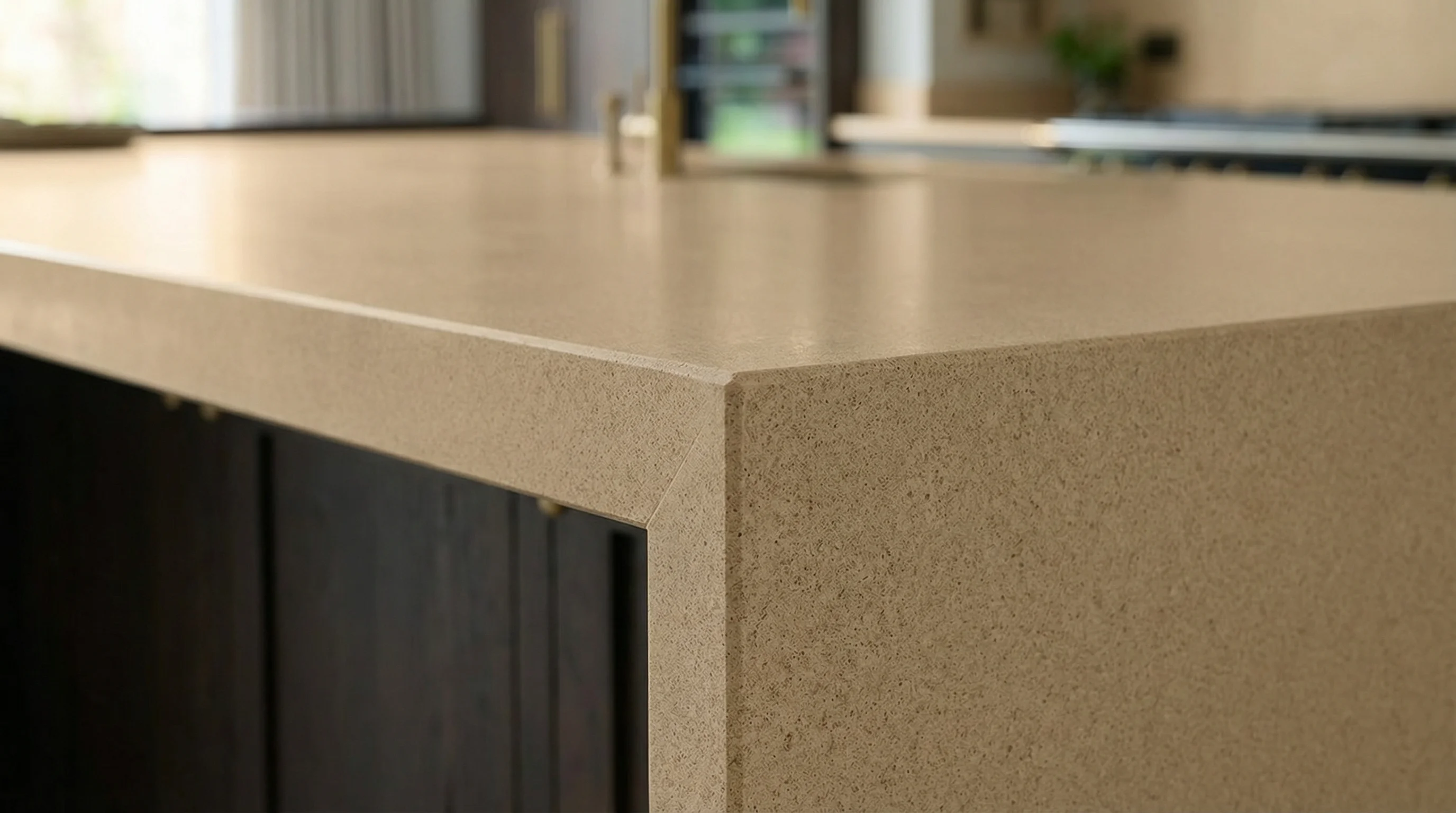 Эта поверхность воплощает в себе спокойствие бескрайних дюн и тепло летнего вечера. Мягкий, песочный оттенок с деликатной мелкозернистой текстурой создает атмосферу абсолютного уюта и безупречного стиля. Глубокий и равномерный цвет позволяет подчеркнуть чистоту линий современного интерьера, гармонично сочетаясь как с фактурным темным деревом, так и с изысканной золотой фурнитурой.