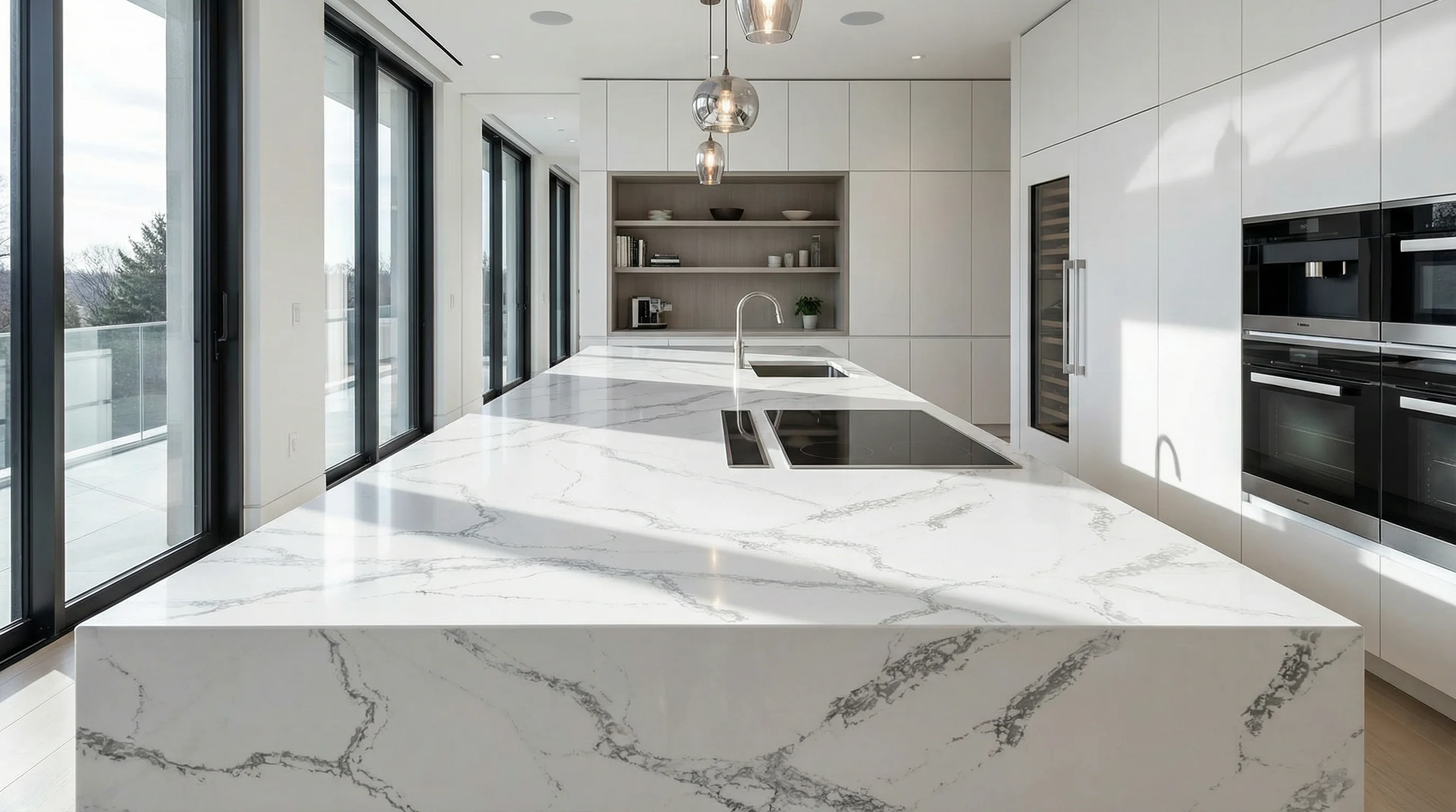 Эта поверхность воплощает в себе эстетику безмятежного спокойствия и классического благородства. Мягкий, молочно-белый фон пронизан тонкими дымчатыми нитями, которые переплетаются в уникальный природный узор, напоминающий едва уловимые блики на морском мелководье. Такой рисунок наполняет интерьер светом и воздухом, превращая обычное пространство в гармоничный ансамбль чистоты и изящества.