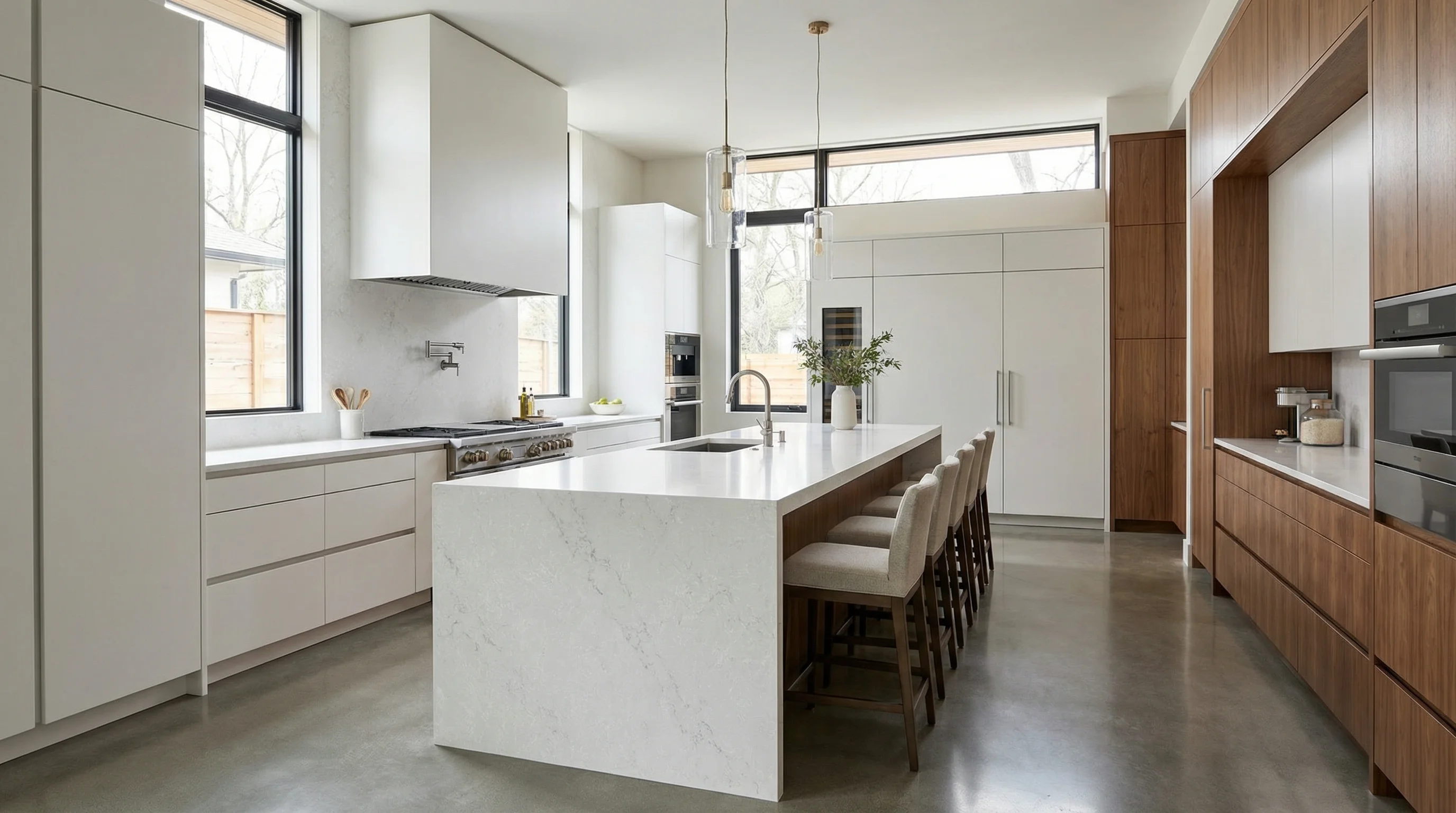 Спокойный и уверенный характер исполнения позволяет этому решению органично дополнить как современные древесные фактуры, так и монохромные глянцевые интерьеры. Это больше, чем просто рабочая зона; это фундаментальный элемент стиля, который превращает пространство кухни в место для вдохновения и уютного общения.