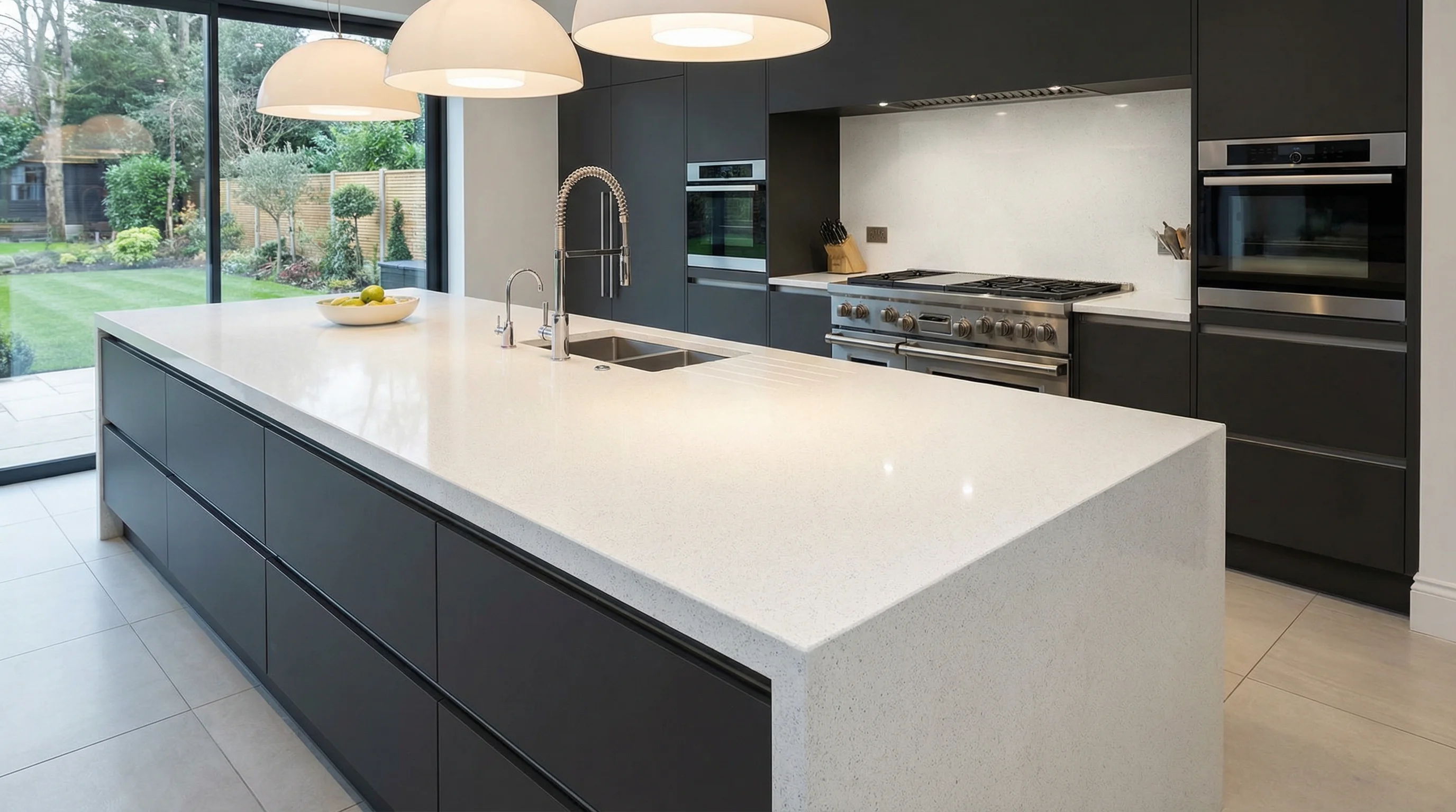 Это изделие воплощает собой философию абсолютной чистоты и визуальной гармонии. Поверхность завораживает деликатной мелкозернистой фактурой, которая мягко преломляет свет, наполняя пространство ощущением безграничного простора и свежести. Нейтральный, но глубокий оттенок идеально подчеркивает современную архитектуру интерьера, превращая центральный элемент кухни в подлинное произведение искусства.