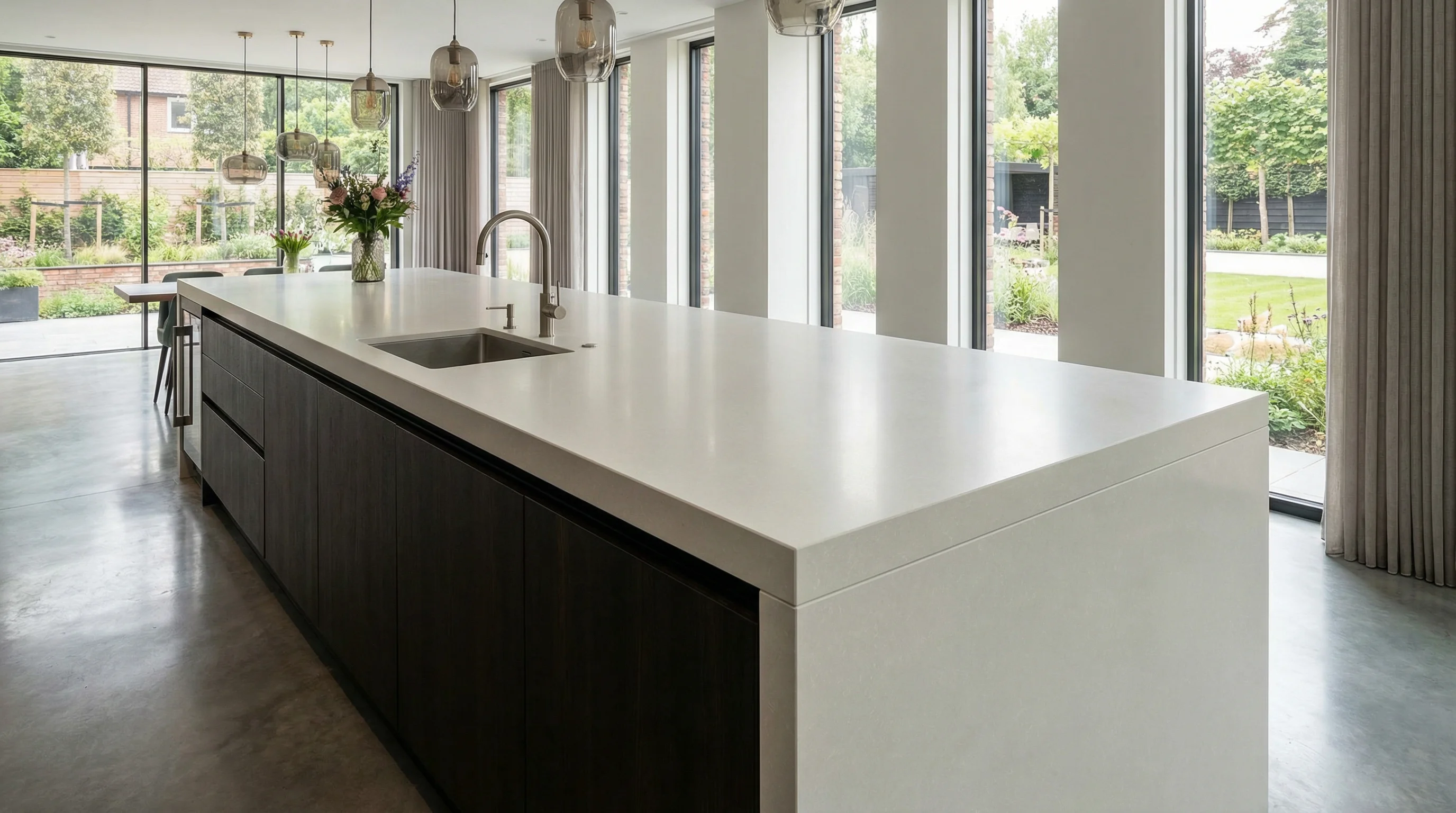 Преобразите свое пространство с этой изысканной столешницей, выполненной из искусственного камня в нежном оттенке "Зимний Туман". Ее поверхность отличается невероятно однородной, бархатистой текстурой с едва уловимой зернистостью, создающей ощущение мягкости и чистоты. Этот сдержанный и благородный цвет идеально вписывается в любой современный интерьер, наполняя кухню светом и визуально расширяя пространство.