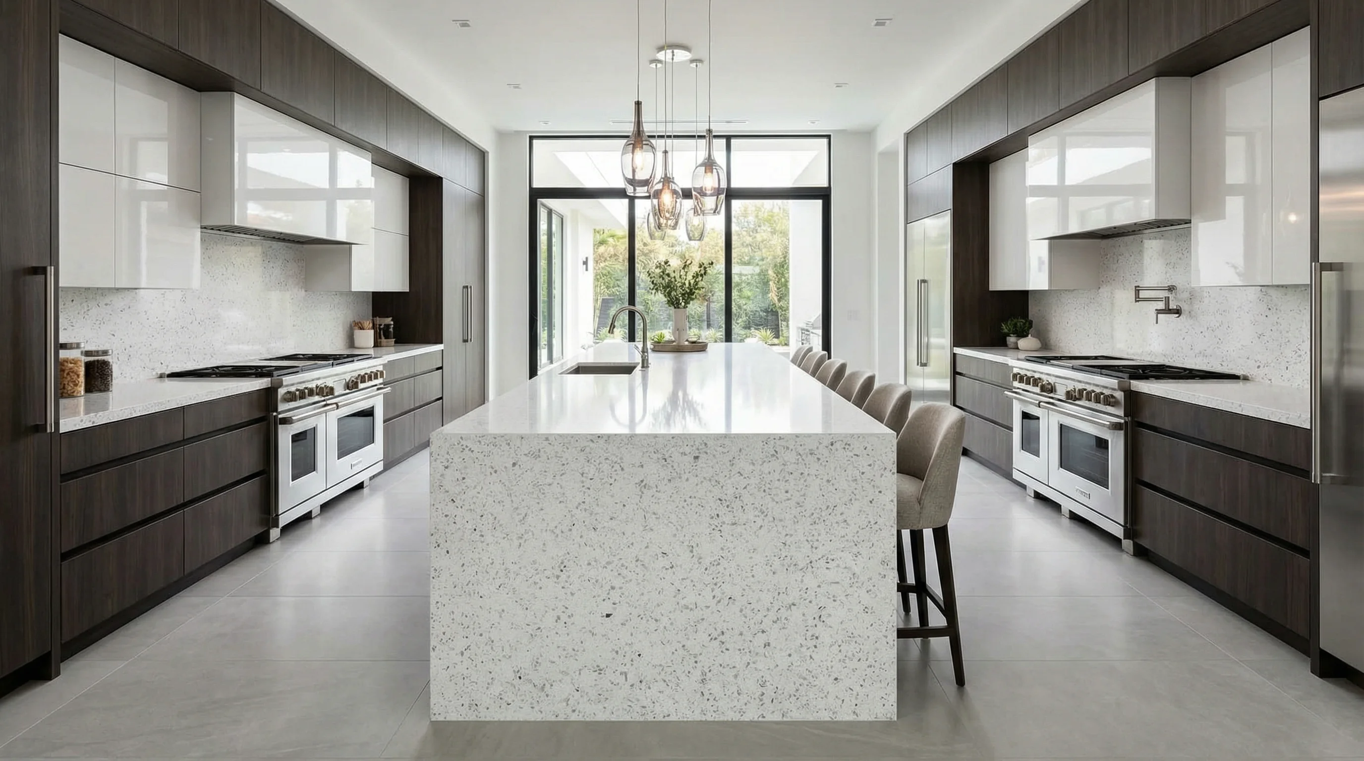 Это воплощение безупречной чистоты и природного спокойствия. Тонкая игра текстур напоминает свежевыпавший снег, в котором деликатно мерцают ледяные вкрапления. Глубокая и одновременно легкая палитра наполняет пространство воздухом и светом, превращая рабочую поверхность в главный визуальный акцент интерьера.