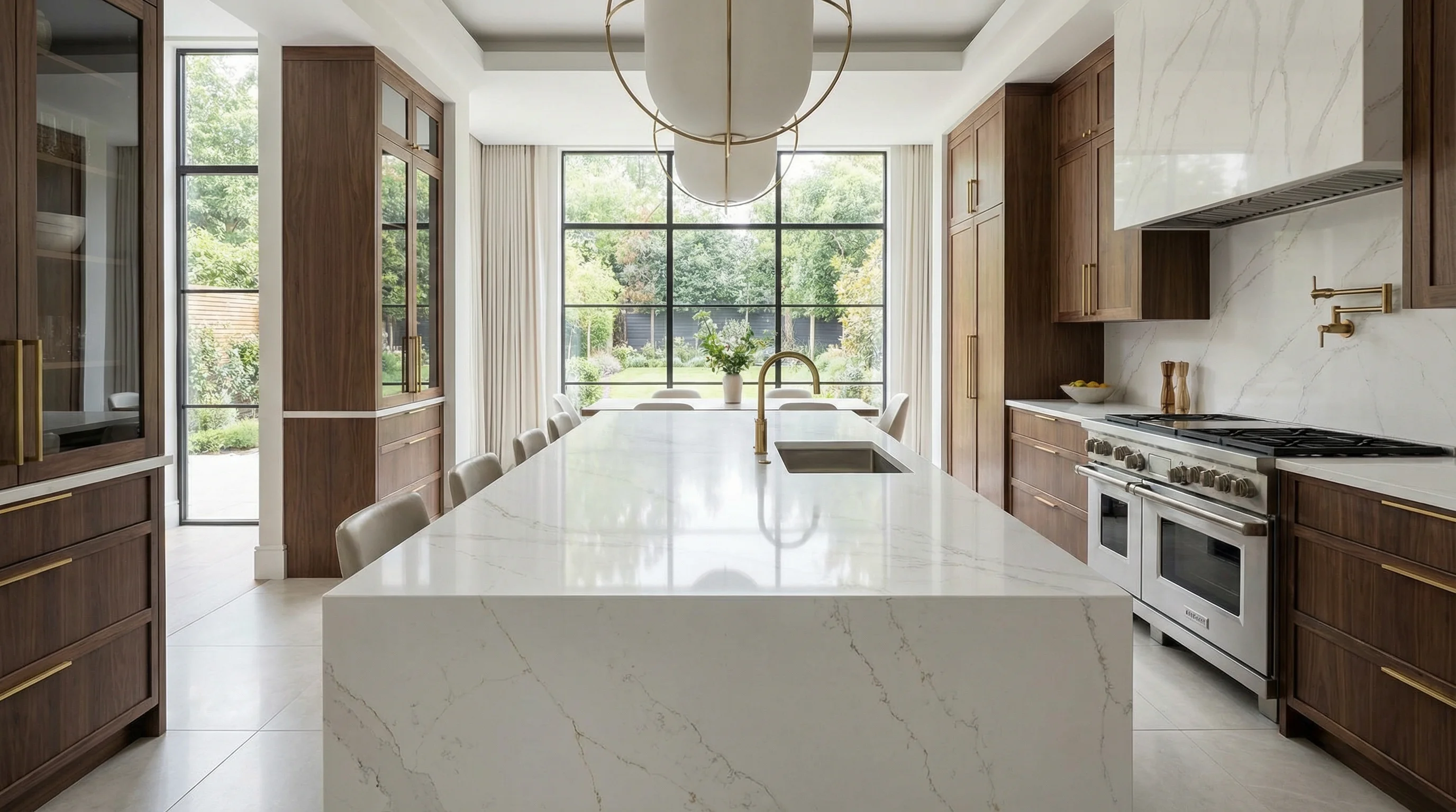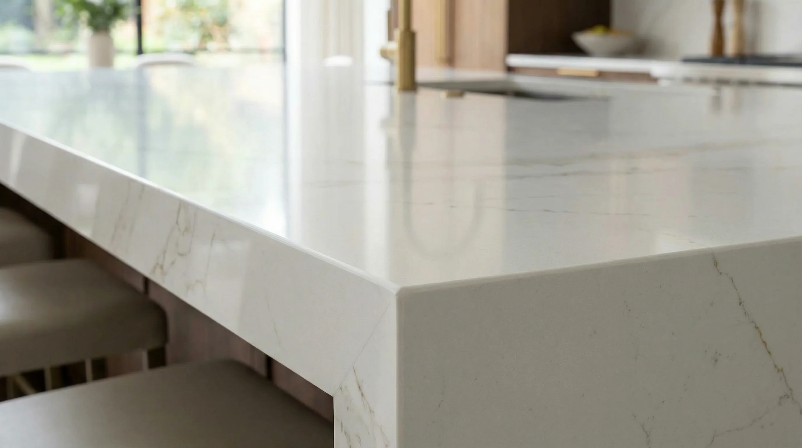 Эта столешница – воплощение элегантности и роскоши, вдохновленное утонченной красотой итальянского мрамора Et Calacatta Gold. Ее поверхность украшена изящными, словно нарисованными природой, золотыми и серыми прожилками, которые создают неповторимый узор на чистом белом фоне.