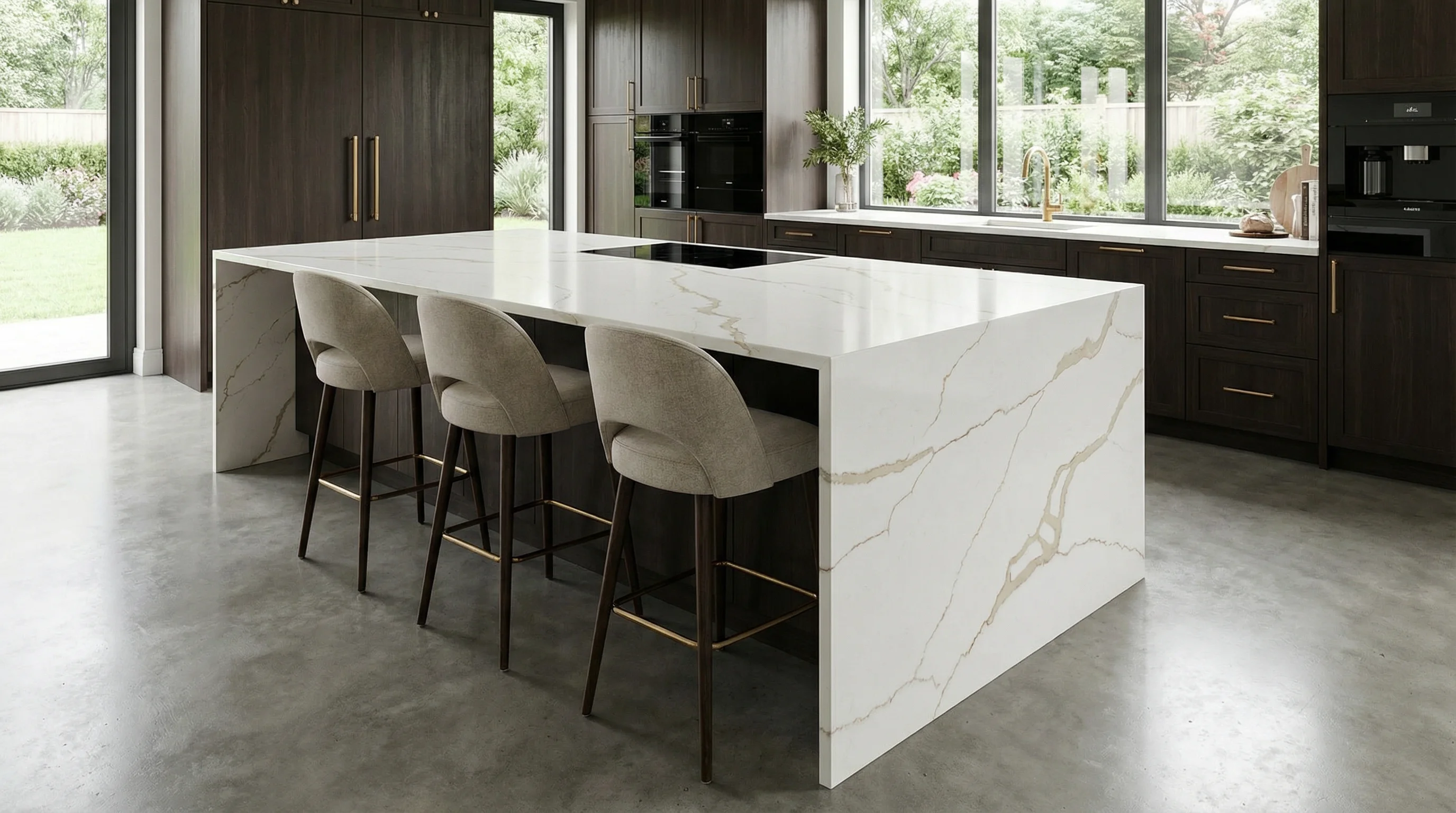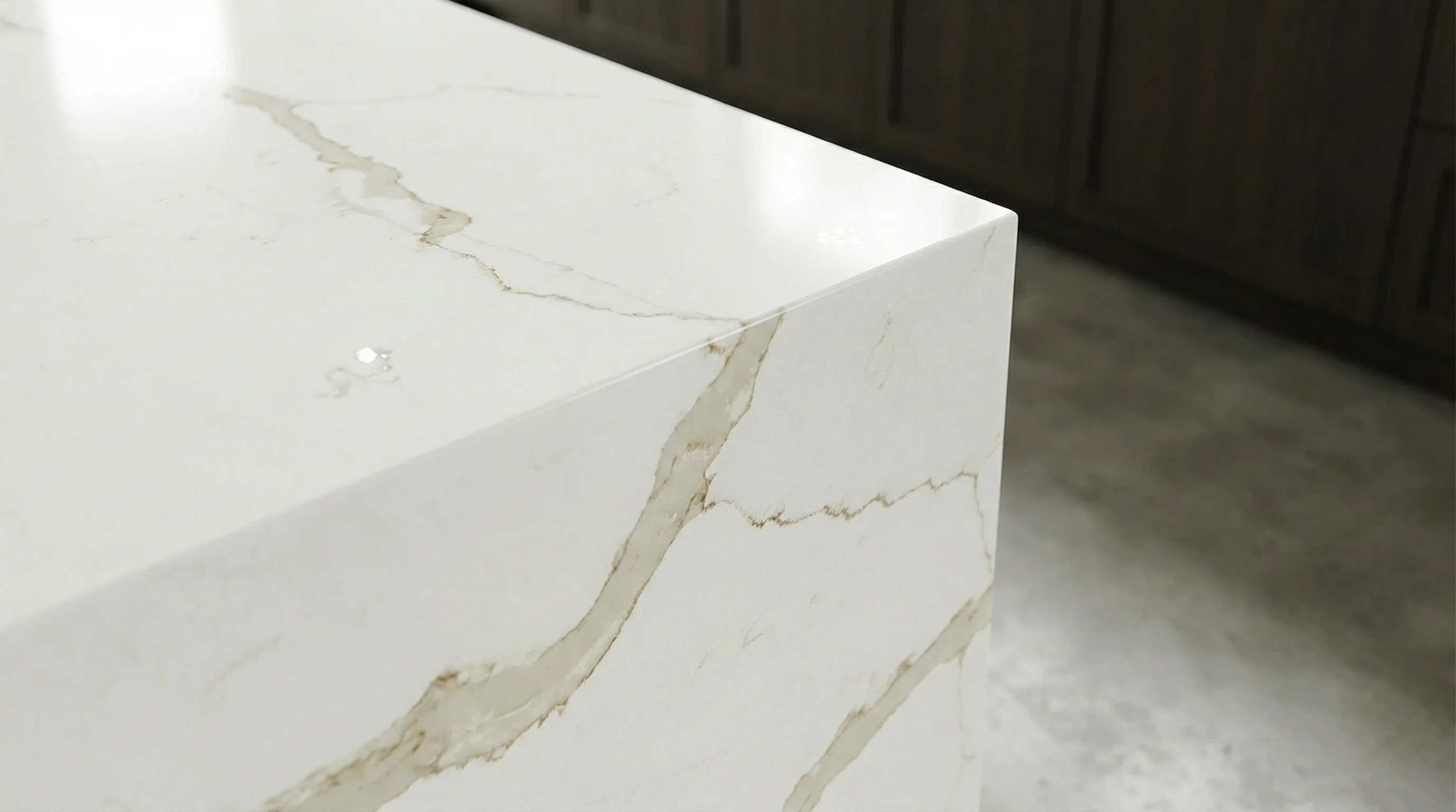 Поверхность этого изделия завораживает безупречной чистотой молочно-белого фона, сквозь который эффектно проходят выразительные золотистые и терракотовые жилы. Рисунок напоминает застывшие во времени потоки солнечного света, создавая в интерьере атмосферу благородного спокойствия и исключительной роскоши. Каждая линия здесь уникальна, превращая рабочее пространство в центральный элемент эстетического притяжения.