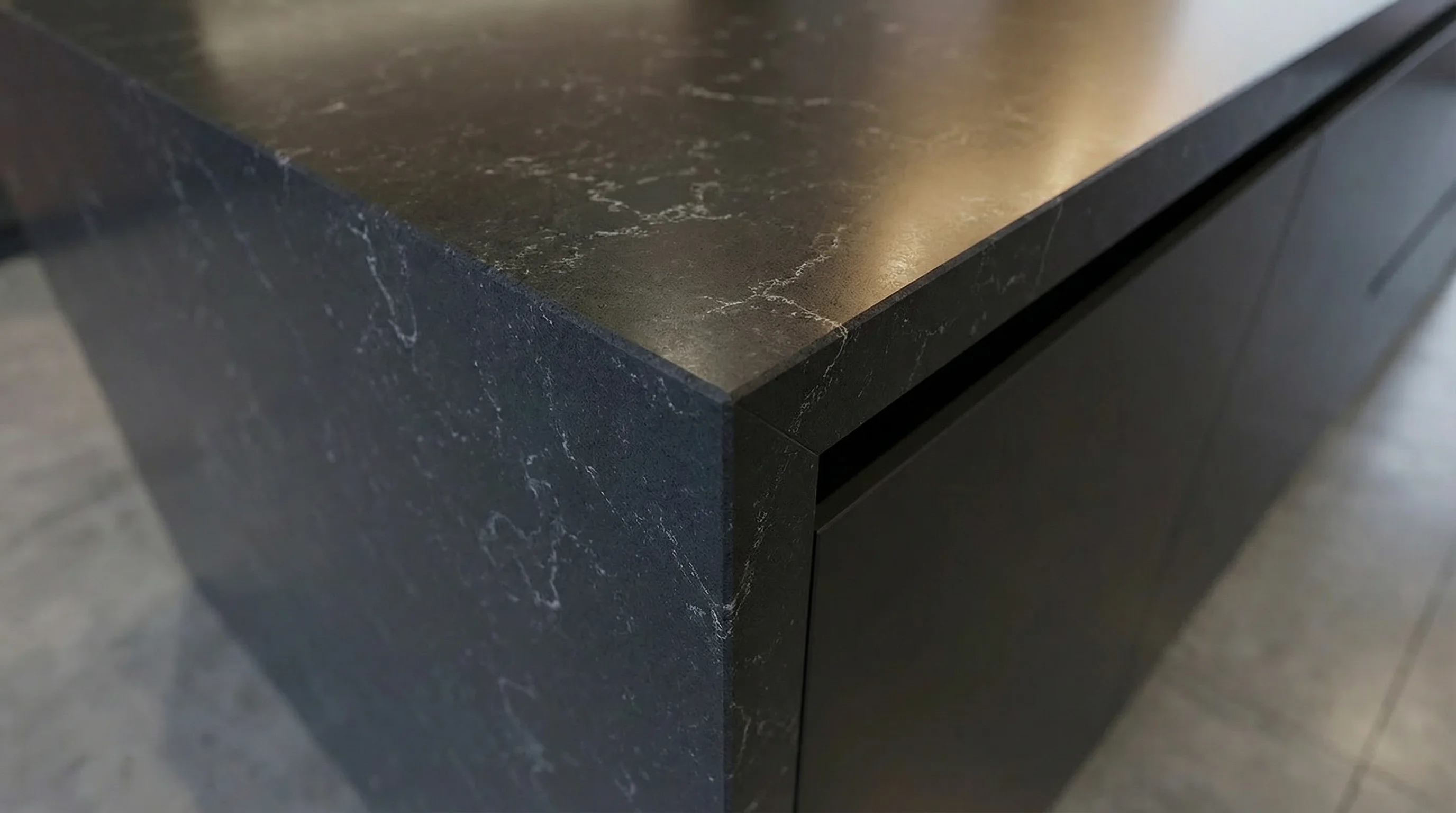 Изысканная палитра глубоких темных оттенков в сочетании с едва уловимым рисунком прожилок воссоздает эстетику бесконечного ночного небосвода. Шелковистая текстура поверхности деликатно поглощает свет, придавая пространству монументальность и подчеркивая безупречный вкус владельца. Такое исполнение идеально интегрируется в современный минималистичный интерьер, превращая функциональную зону в главный художественный акцент вашего дома.