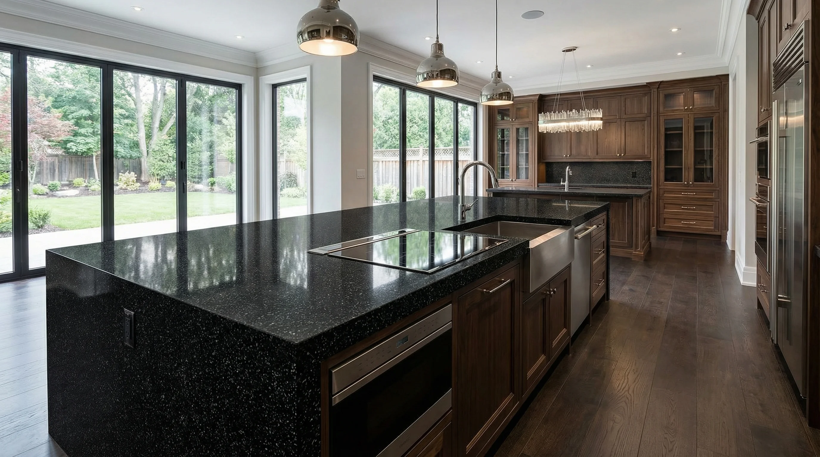 Исключительная плотность и безупречная полировка гарантируют сохранение первозданного вида на десятилетия. Материал отличается высочайшей стойкостью к внешним воздействиям: он не боится влаги, температурных перепадов и сохраняет свою зеркальную гладкость даже при интенсивном использовании. Это сочетание природной мощи и передовых технологий обработки превращает функциональный элемент интерьера в долговечный символ качества.